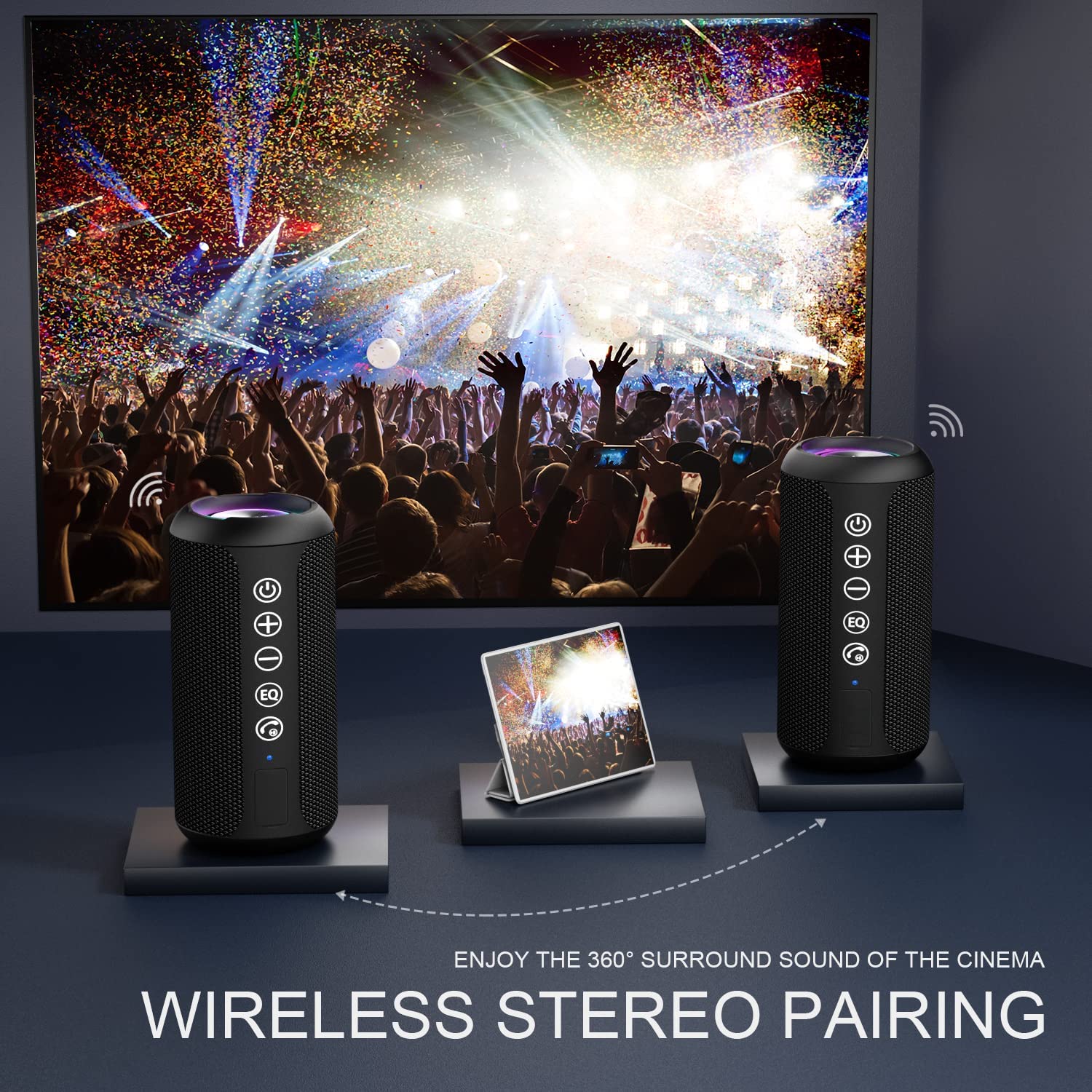Ortizan Portable Bluetooth Speaker, IPX7 Waterproof Wireless Speaker with 24W Loud Stereo Sound, Outdoor Speakers with Bluetooth 5.0, 30H Playtime,66ft Bluetooth Range, Dual Pairing for Home