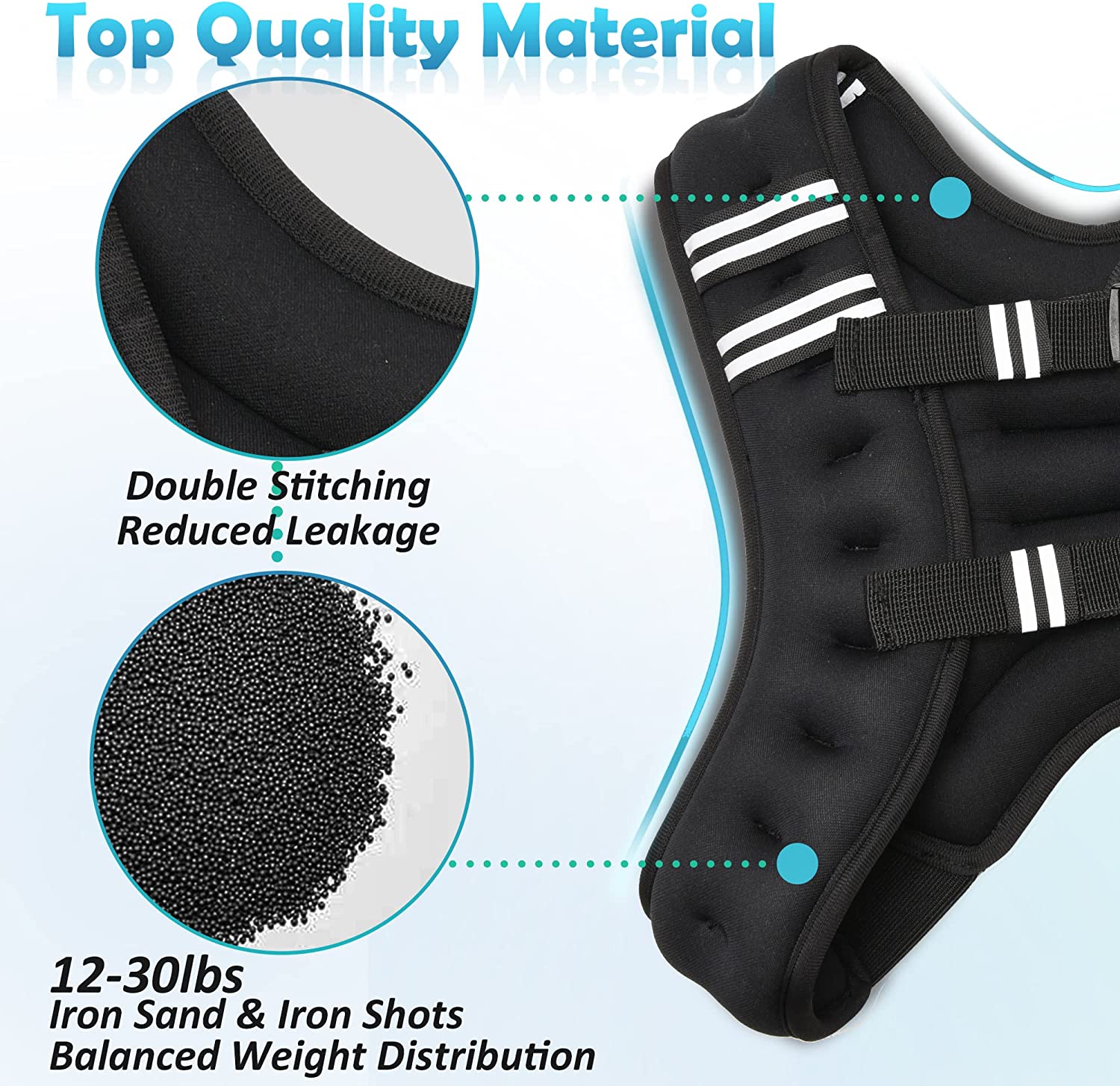 PACEARTH Weighted Vest with Ankle/Wrist Weights 6lbs-30lbs Body Weight Vest with Reflective Stripe, Size-Adjustable Workout Equipment for Strength Training, Walking, Jogging, Running for Men Women