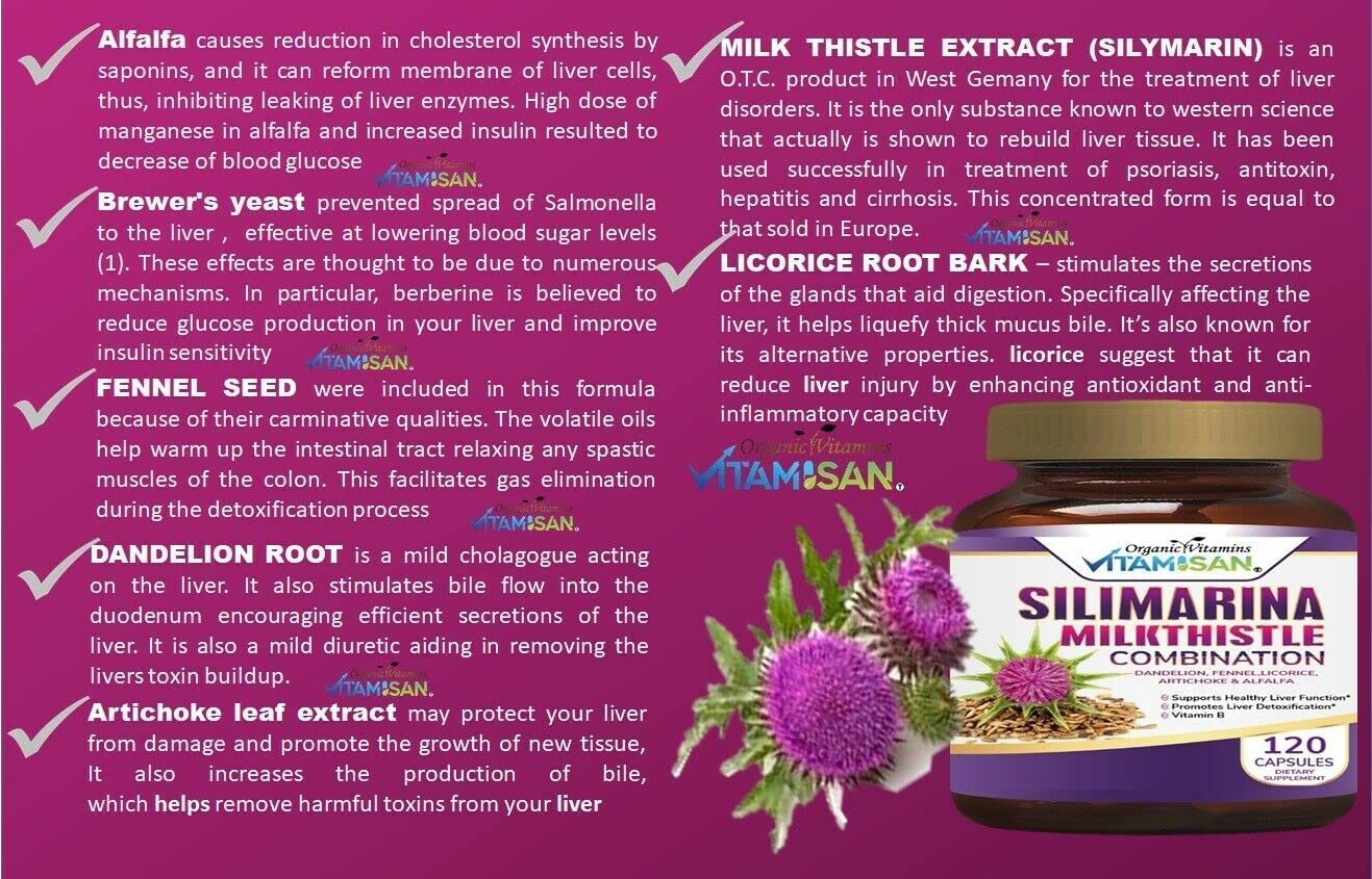GOOD SOURCE OF ANTIOXIDANTS: Natural liver support supplement with antioxidant-rich plant extracts including Milk Thistle, ALFALFA POWDER , and Artichoke. PREMIUM LIVER FORMULA: Liver Support is formulated with a special blend of herbs and plant extracts to stimulate new liver cell production and cleanse the liver for optimal health. GENTLE DAILY CLEANSE: The liver is the largest internal organ and functions to filter the blood, cleansing impurities, and waste. It also plays a key role in cholesterol balance, digestive enzyme production and energy metabolism and is the main fat burning organ. MILK THISTLE LIVER SILIMARINA SUPPORT PROVIDES SO MANY HEALTHY BENEFITS - Adding Liver Support Capsules to your daily intake is incredibly important to any healthy lifestyle. Loaded with antioxidants, it's been known to promote healthy detoxification and digestio