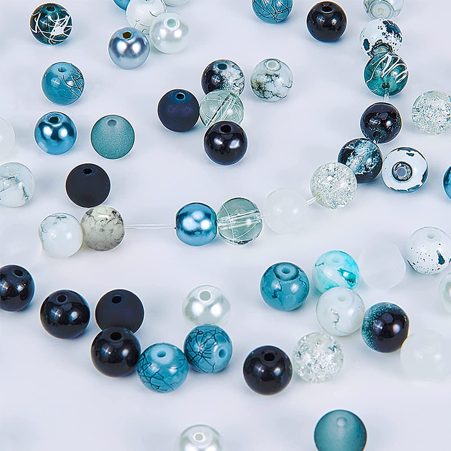 PH PandaHall 24 Color 8mm Round Glass Beads, 720pcs Black White Bracelet Beads Bulk Marble Loose Beads Spacers for Bracelet Earring Necklace Jewelry Making Halloween Eid Mubarak Ramadan Decoration