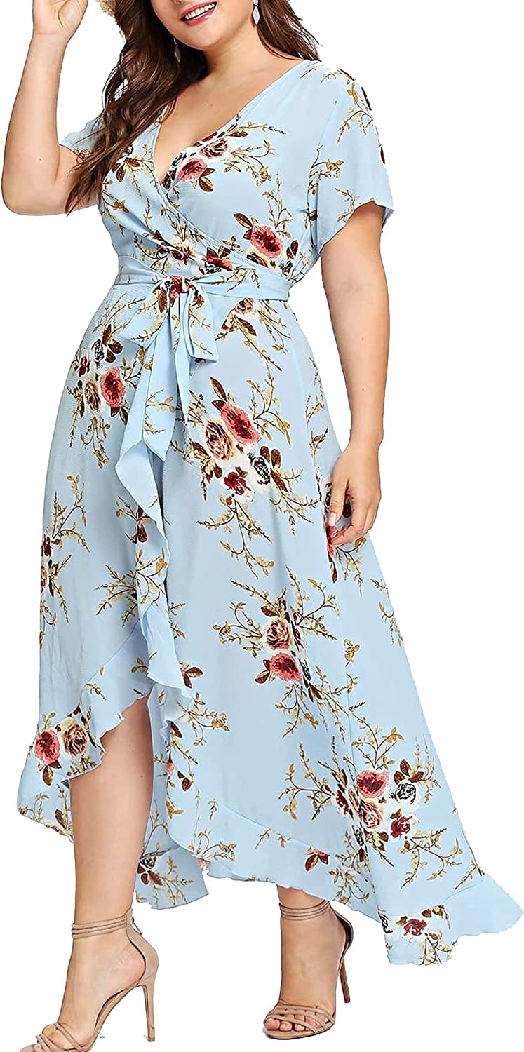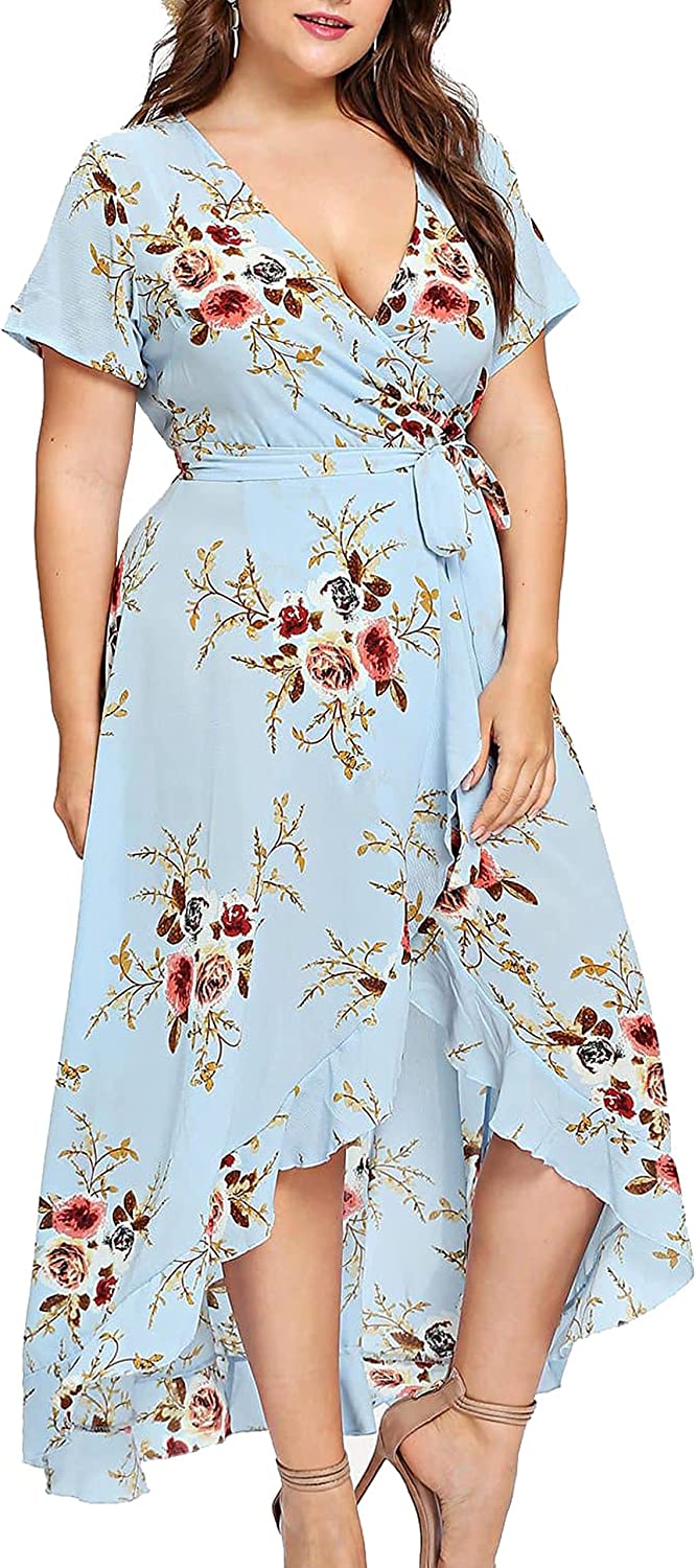 Plus Size Women Empire Waist Asymmetrical High Low Bohemian Maxi Dress