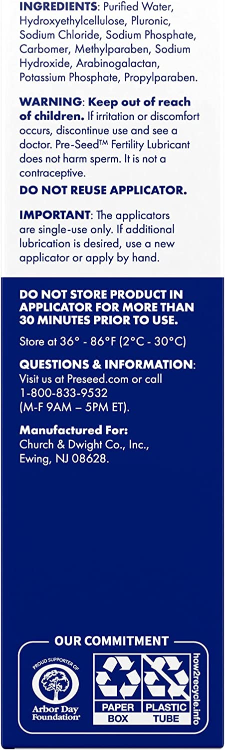 Pre-Seed Fertility Lubricant, For Use by Couples Trying to Conceive
