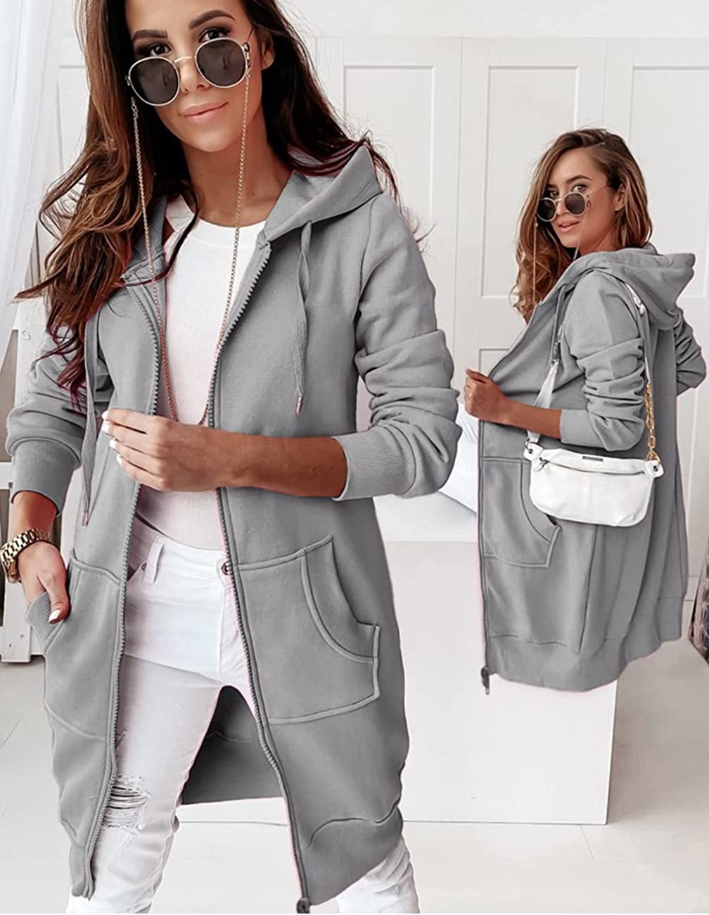 PRETTYGARDEN Women's 2022 Fashion Zip Up Hoodies Casual Long Sleeve Sweatshirts Jacket Hooded Coat with Pockets