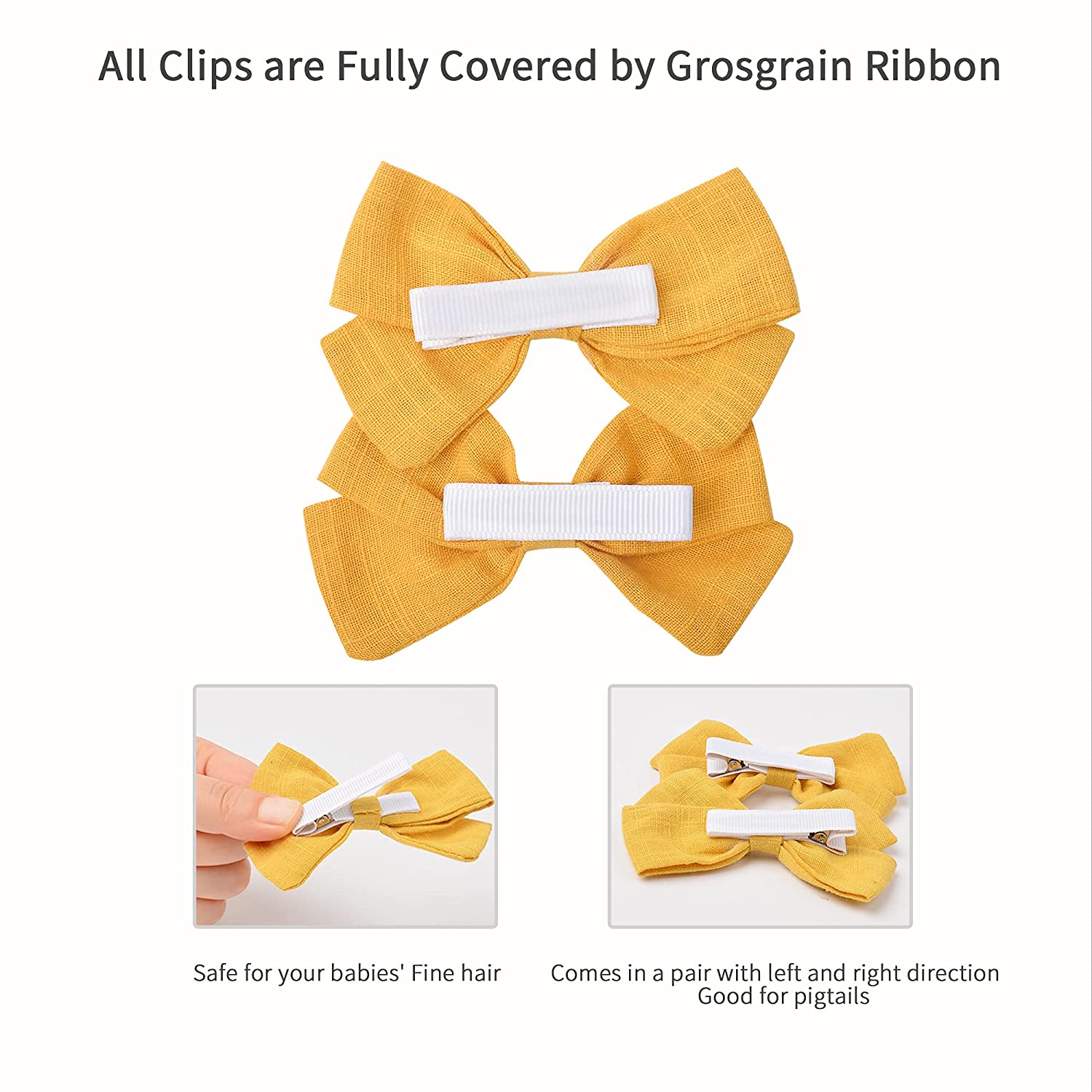 Prohouse 40 PCS Baby Girls Hair Clips Fully Lined Non Slip For Infant Fine Hair Bows Barrettes for Toddlers Kids Children in Pairs