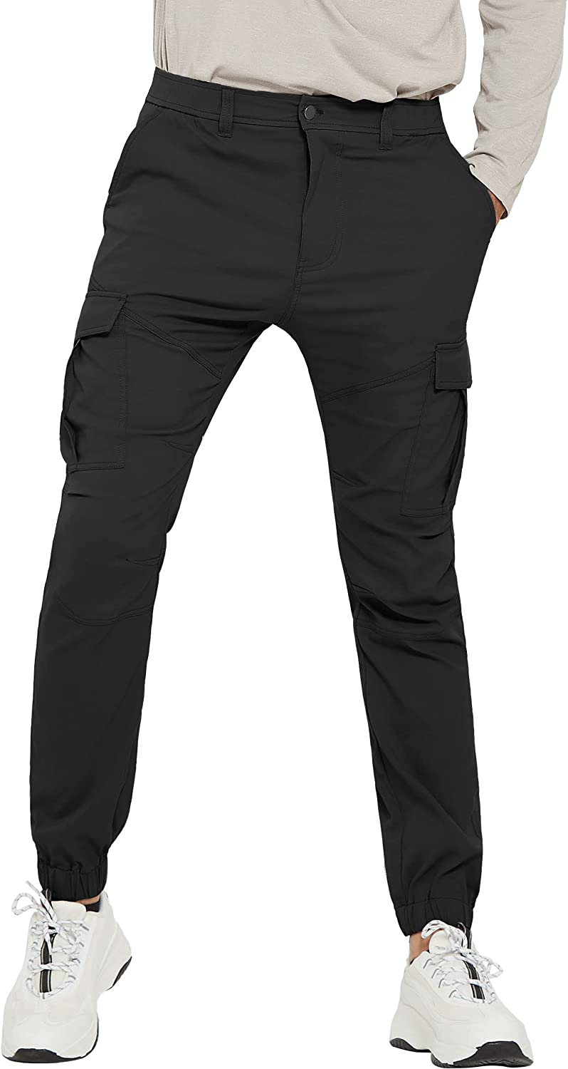 PULI Men's Hiking Cargo Pants Slim Fit Stretch Jogger Cycling Waterproof Outdoor Trousers with Pockets