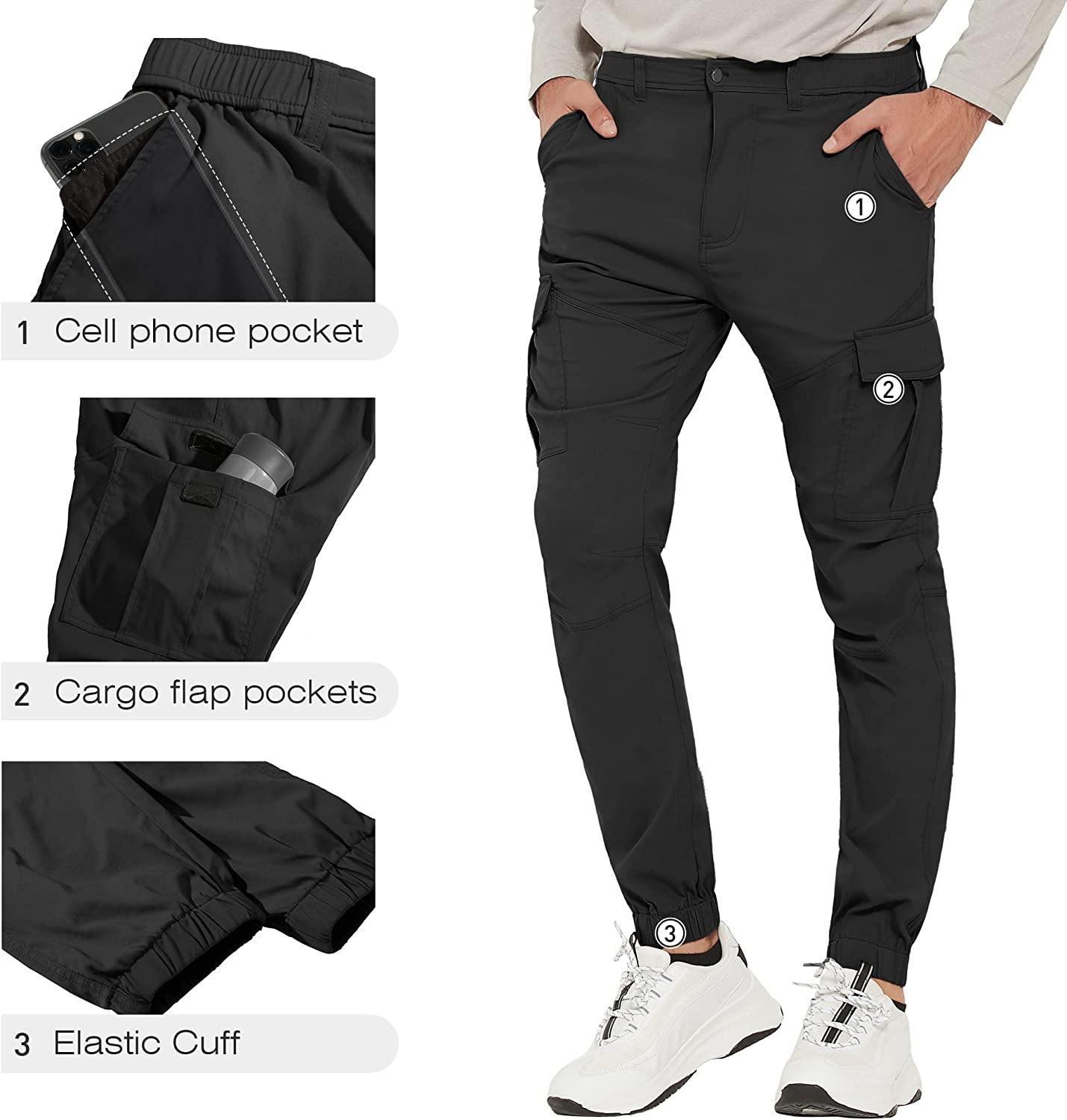 PULI Men's Hiking Cargo Pants Slim Fit Stretch Jogger Cycling Waterproof Outdoor Trousers with Pockets