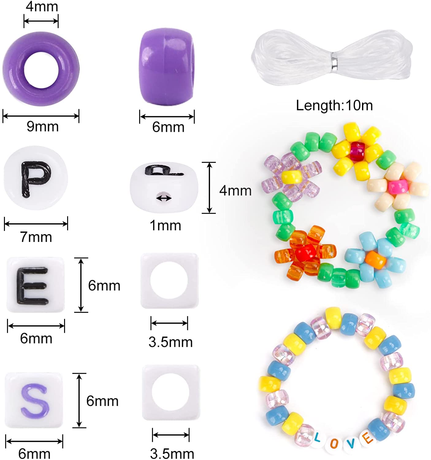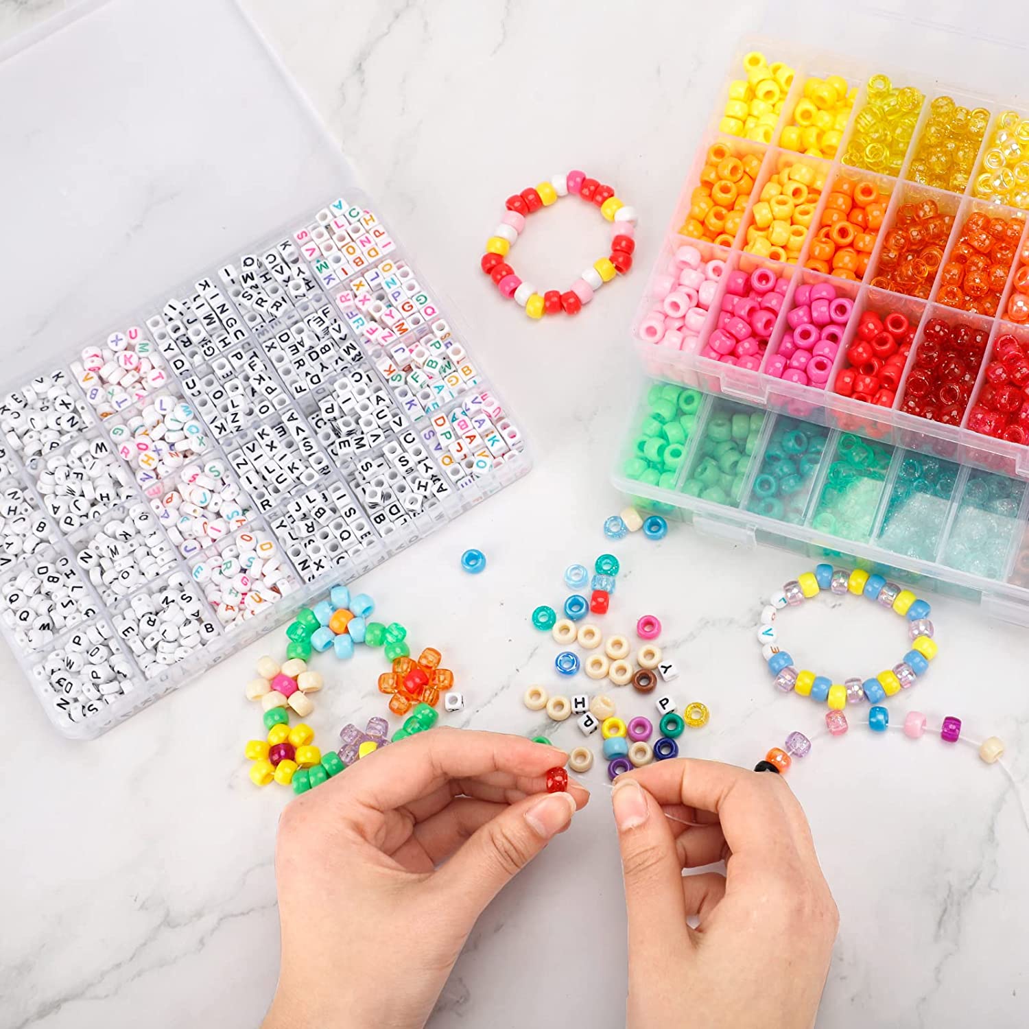 Quefe 3960pcs Pony Beads Craft Bead Set, 2400pcs Rainbow Beads in 48 Colors and 1560pcs Letter Beads with 20 Meter Elastic Threads for Bracelet Jewelry Necklace Making