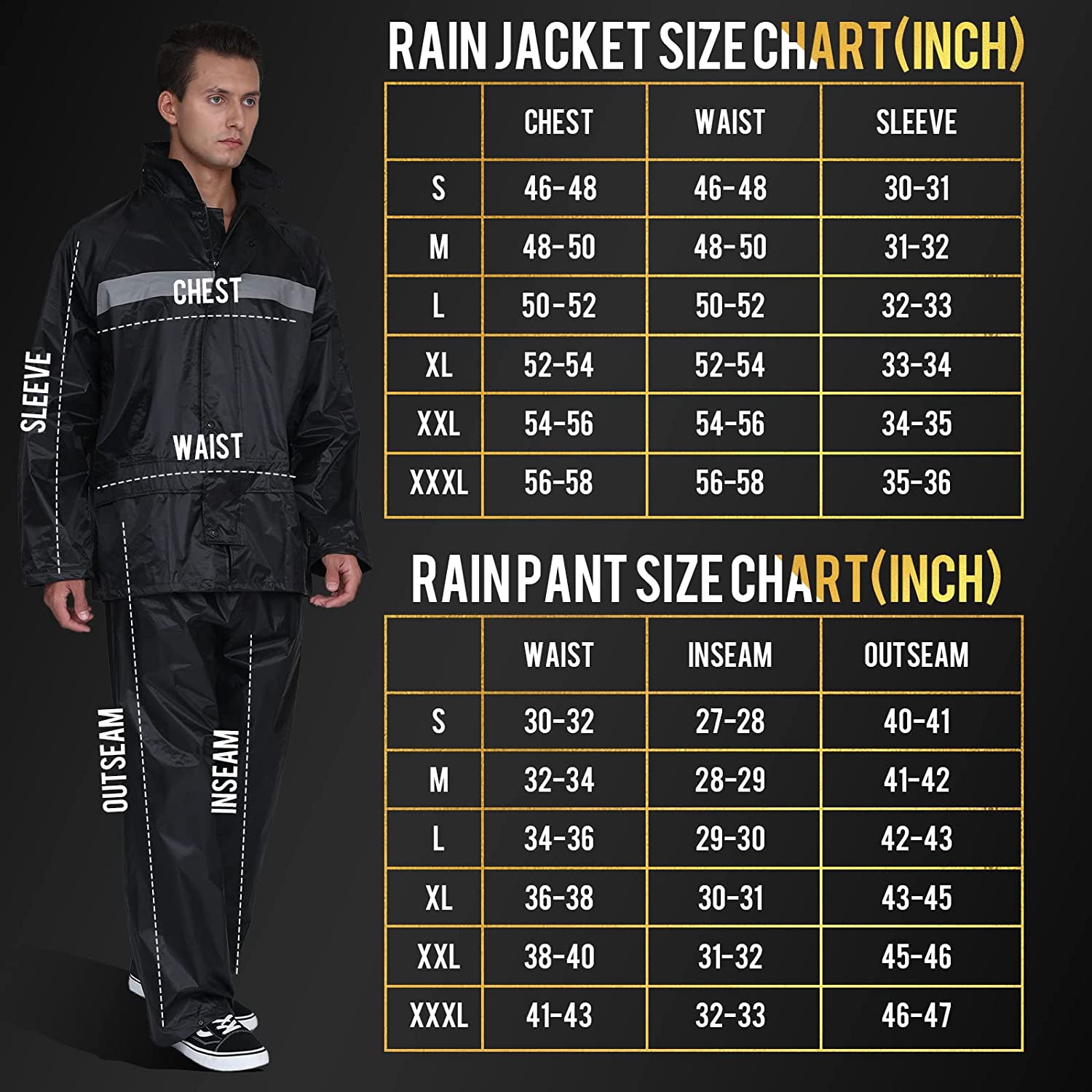 Rain Gear for Men Women Waterproof Lightweight Rain Suits Hideaway Hood Rain Jacket and Rain Pants for Outdoor Activities