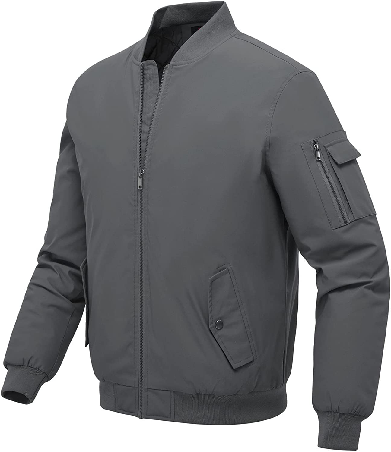 Rdruko Men's Bomber Jacket Quilted Full Zip Winter Flight Work Padded Outerwear