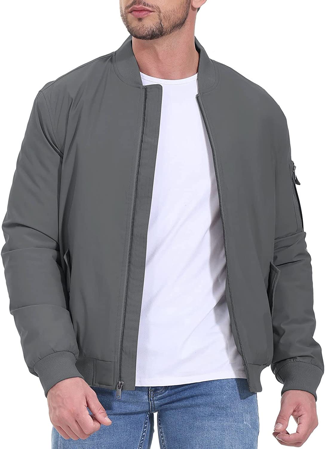 Rdruko Men's Bomber Jacket Quilted Full Zip Winter Flight Work Padded Outerwear