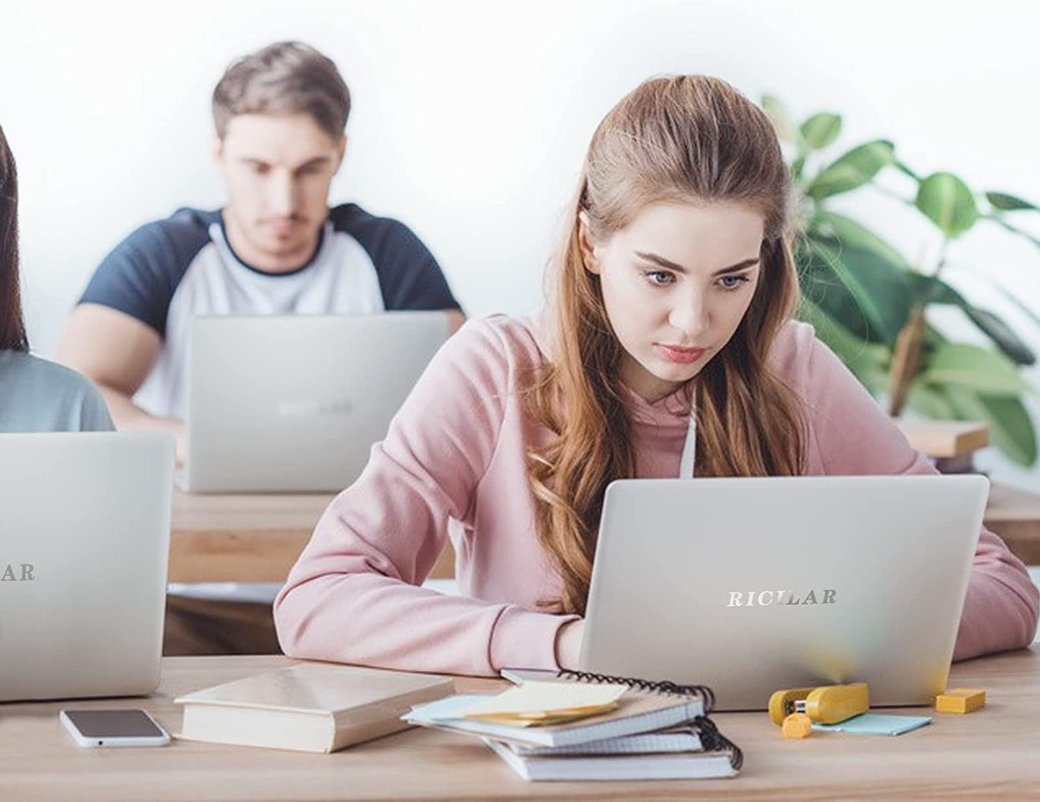 RICILAR Windows 10 Home Laptop, 14.1 Inch HD Display, Intel Celeron N4020, 4GB RAM, 128GB SSD, Backlit Keyboard, Type C, HDMI, Wi-Fi 5, Silver, School Laptop Computer for Students and Business