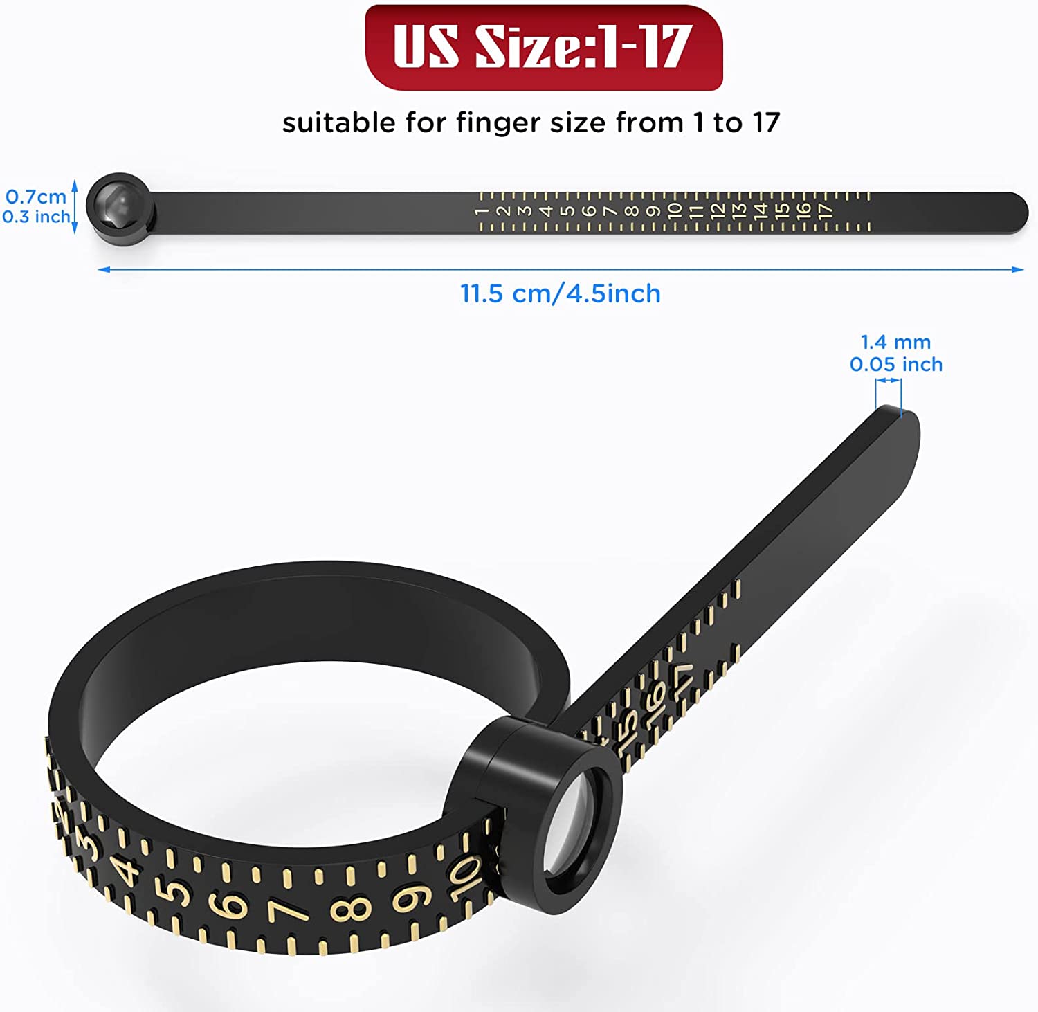 Ring Sizer, Dowsabel Ring Sizer Measuring Tool, Reusable Finger Size Measuring Tape with Magnified Glass, Clear and Accurate Jewelry Sizing Tool 1-17 USA Rings Size
