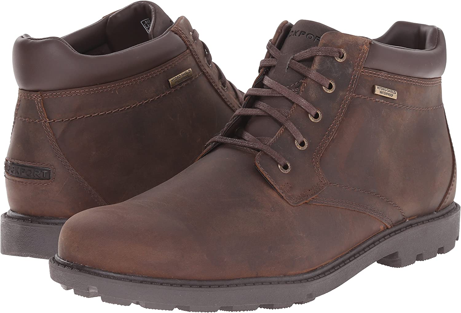 Create a subdued rugged look that can be extremely versatile with the style and practicality of these Rockport boots. Waterproof leather upper with a hand-burnished finish and tonal topstitching. Hydro-Shield construction such as waterproof leather, sealed seams, a waterproof insole and a gusseted tongue provide a dry environment during wet conditions. Traditional lace-up closure allows for a secure and adjustable fit. Padded tongue and collar provide additional cushioning. Quick-drying mesh lining and a polyurethane footbed that is cushioned for all-day support. Features adiPRENE by Adidas sport technology in the heel for shock absorption. Slip-Resistant TPR rubber traction outsole. Imported. Measurements: Heel height: 1 1⁄4 inch weight: 1 lb 4 oz Shaft: 4 3⁄4 inches Platform height: 3⁄4 inch product measurements were taken using size 12, width M (D). Please note that measurements may vary by size. Weight of footwear is based on a single item, not a pair. Rockport has always been one step ahead of the times, believing the perfect shoe has not yet been invented. This positive dissatisfaction compels them to constantly improve upon their footwear. Founded in 1971, they were the first company to use advanced athletic technologies in casual shoes to achieve lightweight comfort, and the first company to engineer walking comfort in dress and casual shoes.