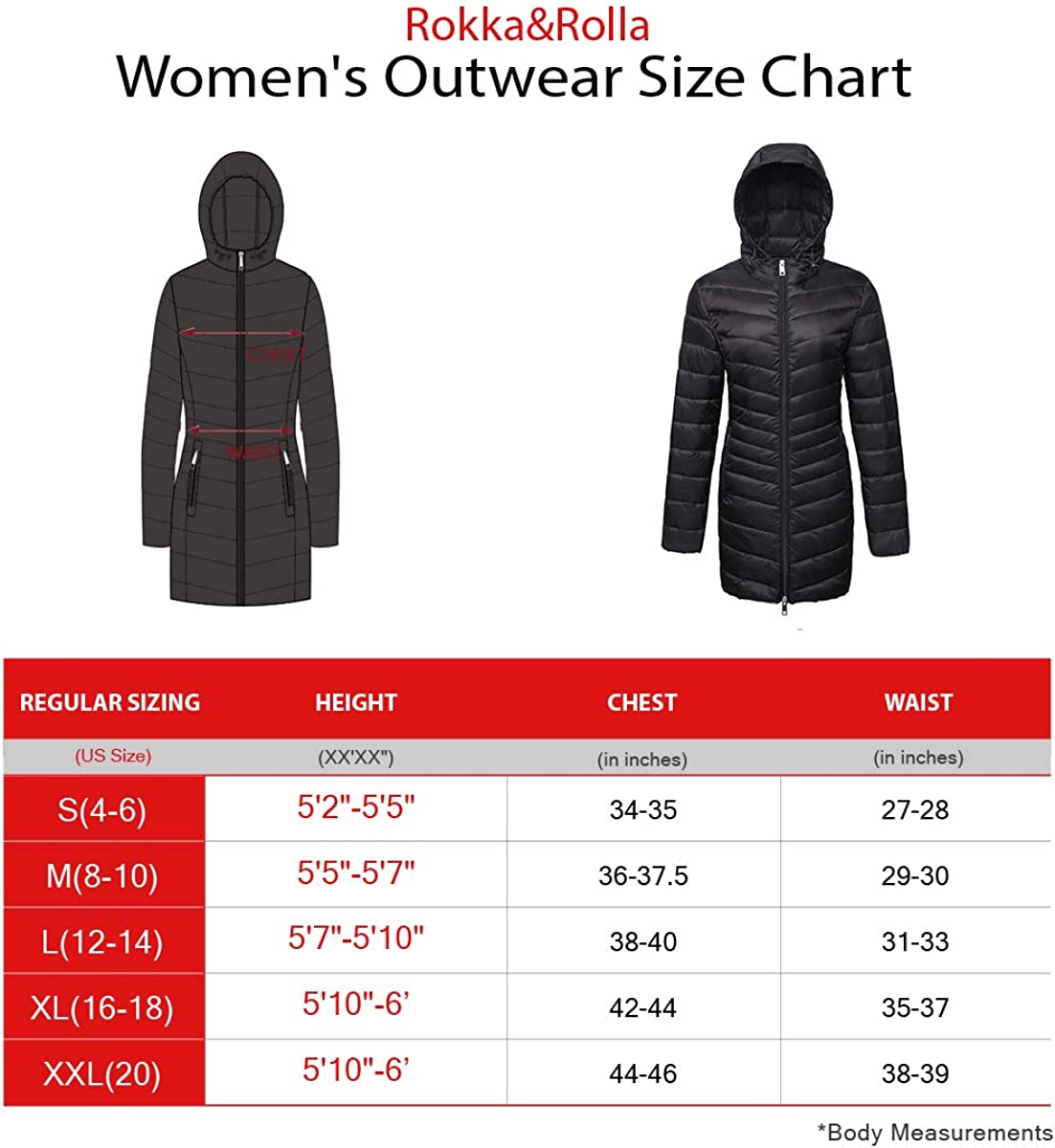 Rokka&Rolla Women's Lightweight Packable Puffer Jacket Water-Resistant Hooded Winter Long Coat