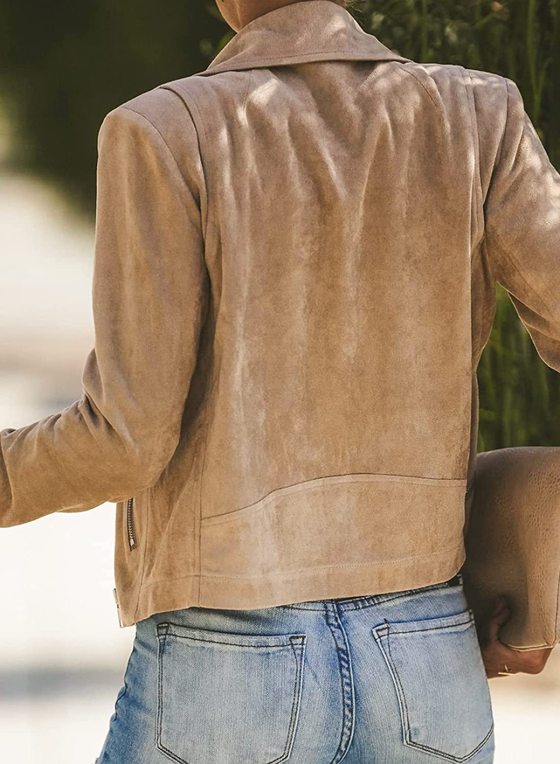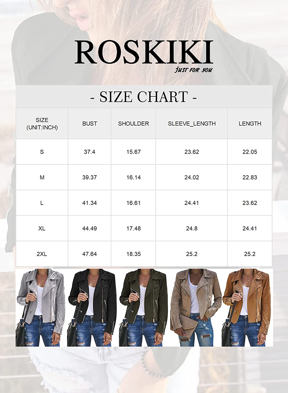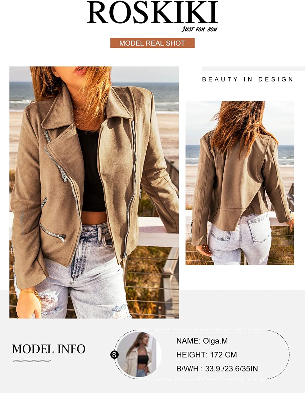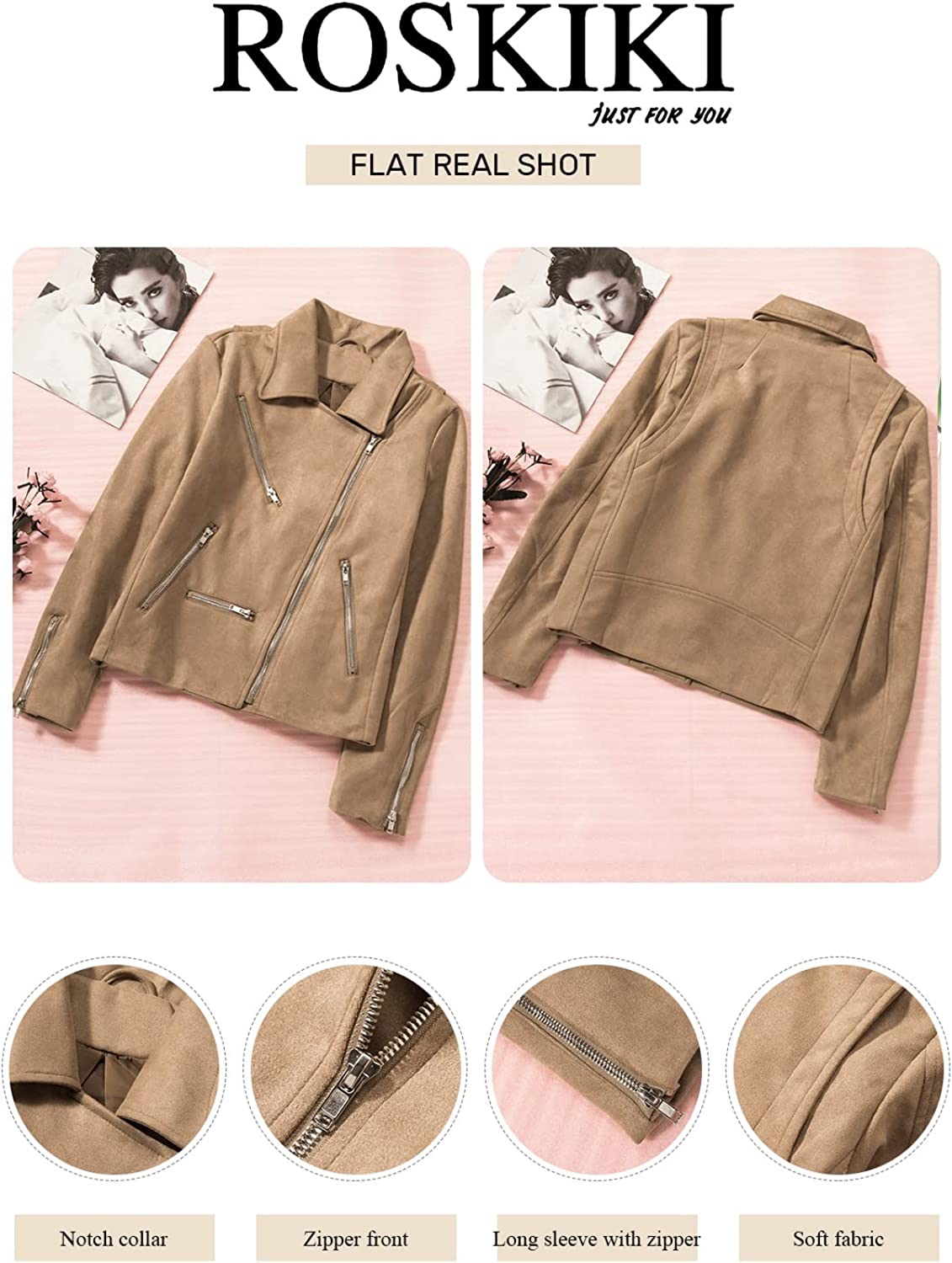 ROSKIKI Women's Faux Suede Moto Biker Short Coat Jacket