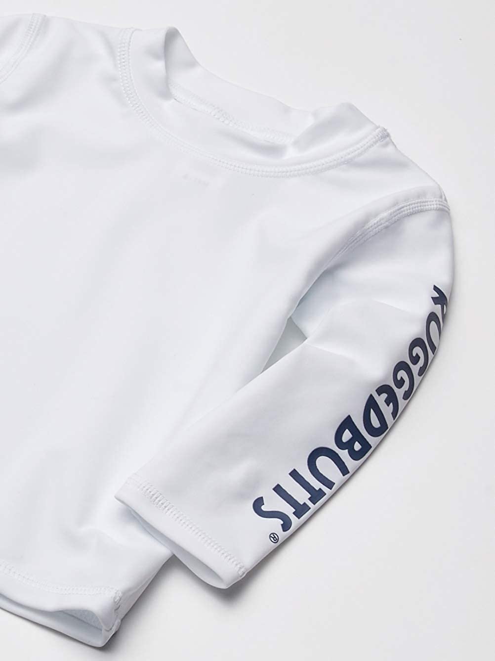 Keep your little dude safe from the sun with this long sleeve rash guard top with UPF 50+ fabric. The solid top makes it easy to mix and match with your favorite RuggedButts swim trunks for a look that is vacation ready! | Care Instructions: Hand wash cold; lay flat to dry