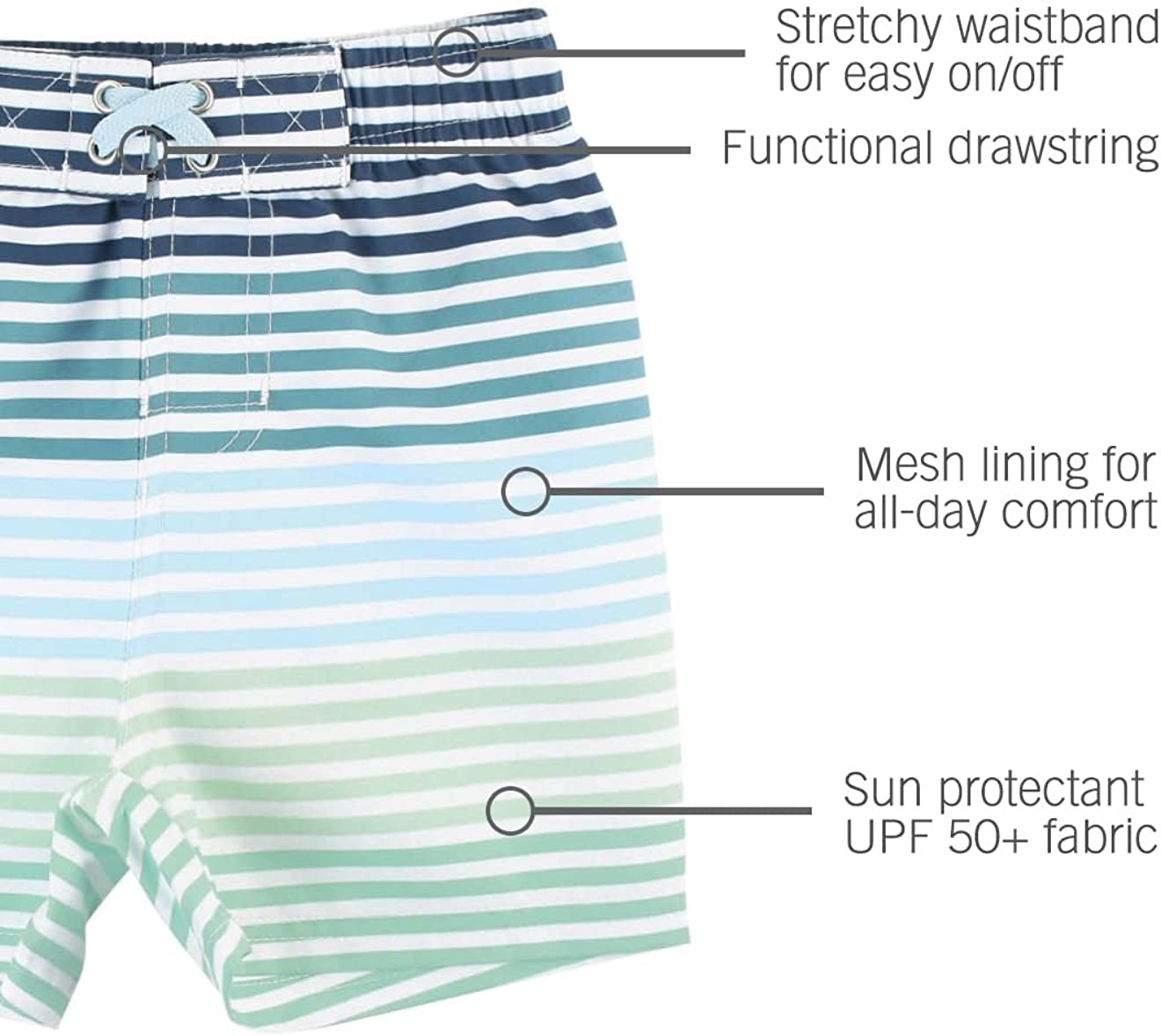 Make some waves in these ultra cool swimsuit bottoms! A drawstring waist and comfortable stretchy waist will have him splashing around all summer long in these adorable trunks. | Care Instructions: Hand wash cold; lay flat to dry