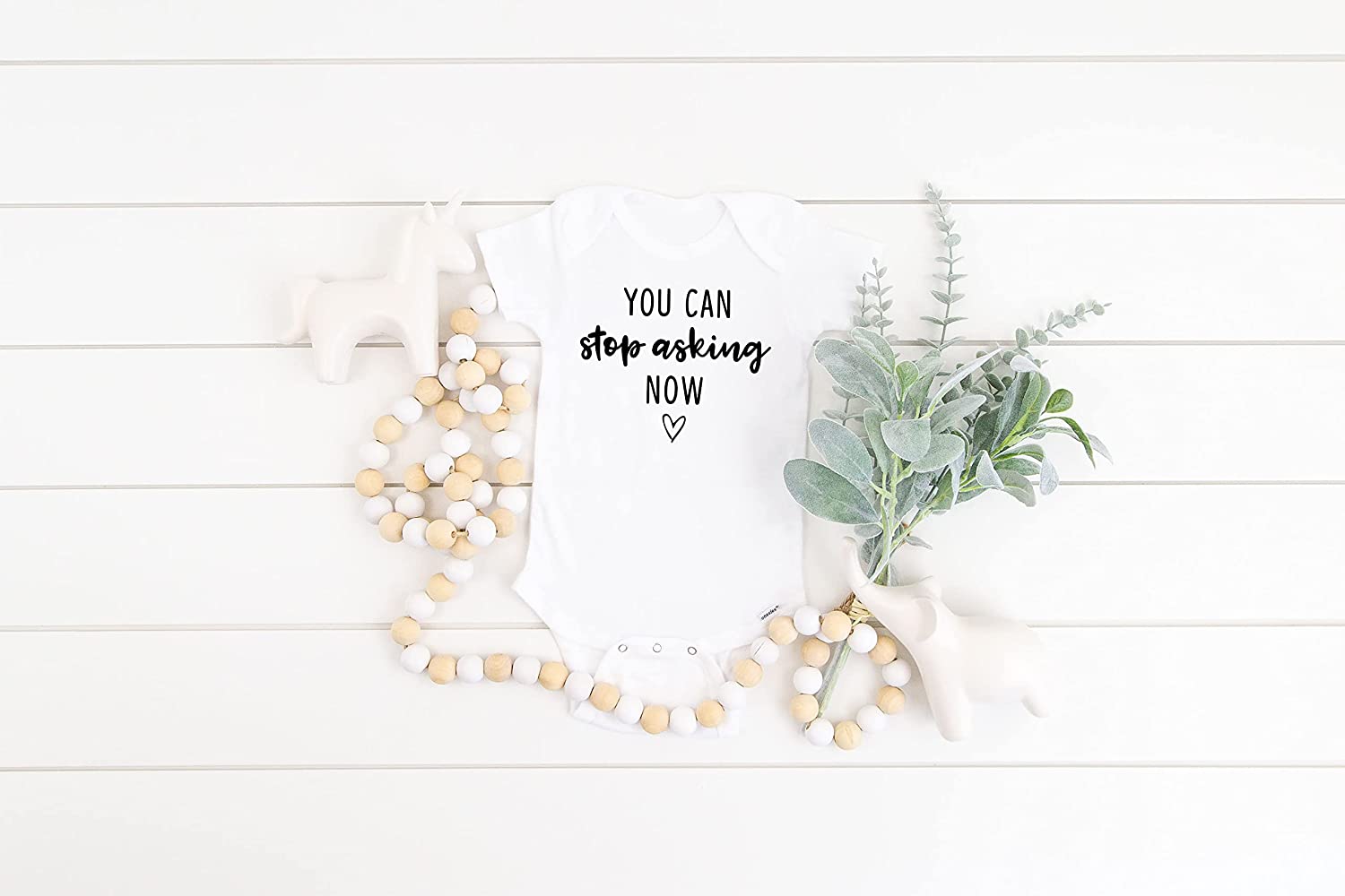 SARBIEN Designs You Can Stop Asking Now Pregnancy Announcement | Baby Reveal One Piece | Funny Pregnant Bodysuit | Romper