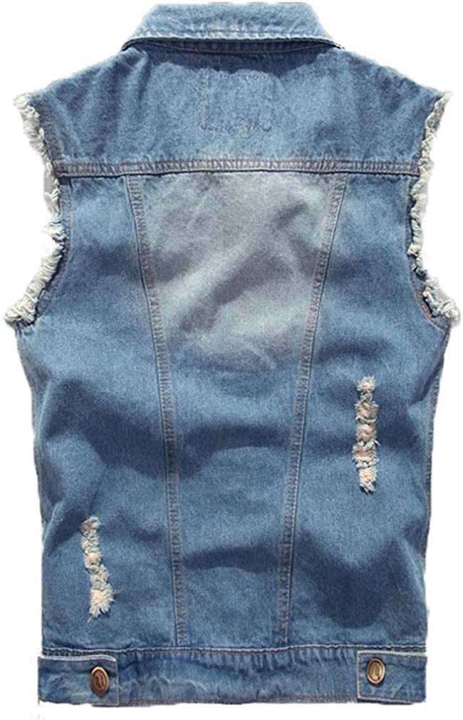 Saukiee Men's Casual Lapel Denim Vest Jacket Vintage Slim Fit Sleeveless Ripped Jeans Vests