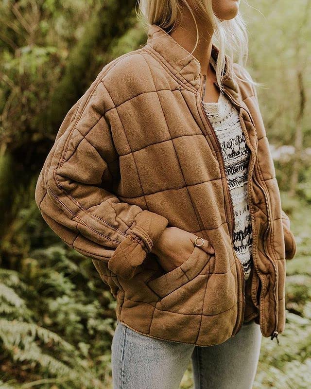 SAUKOLE Womens Winter Dolman Long Sleeve Full-Zip Quilted Jacket Coat Warm Outerwear