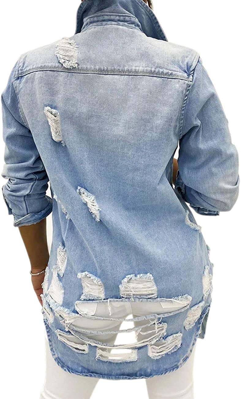 SeNight Women's Jean Jacket Long Sleeve Classic Distressed Fray Hem Tassels Denim Trucker Jackets