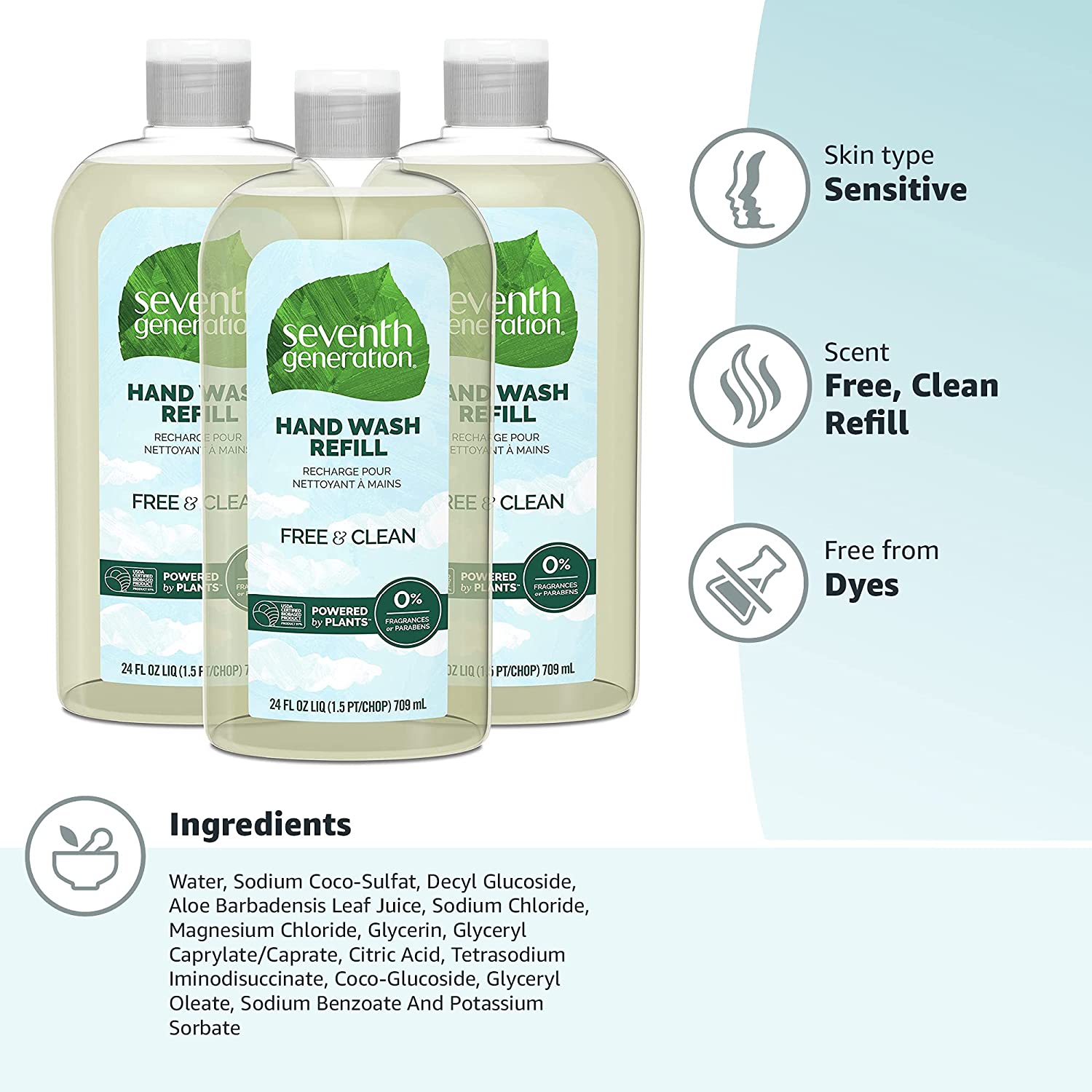 After 25 years of innovation, we've learned a thing or two from plants: they can clean up our world while being kind to our families. Seventh Generation plant-based Hand Wash gets the job done with no dyes, no triclosan and is fragrance free. Our unscented hand soap is made for sensitive skin and gentle on your hands. Life is complicated. Choosing a liquid hand soap should be simple. This Hand Wash Refill will fill up your Seventh Generation bottle twice. Better yet? Not just a hand soap refill but try this as you New favorite Body Wash. The gentle plant-based formula in Seventh Generation Hand Wash & Body Soap is made with renewable cleaning ingredients that leaves your hands and body clean, soft and refreshed. Everything should be this easy.