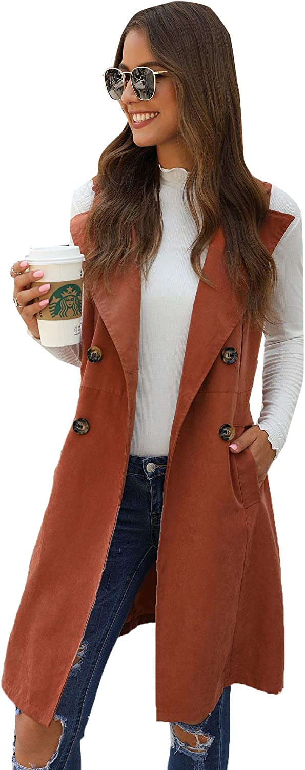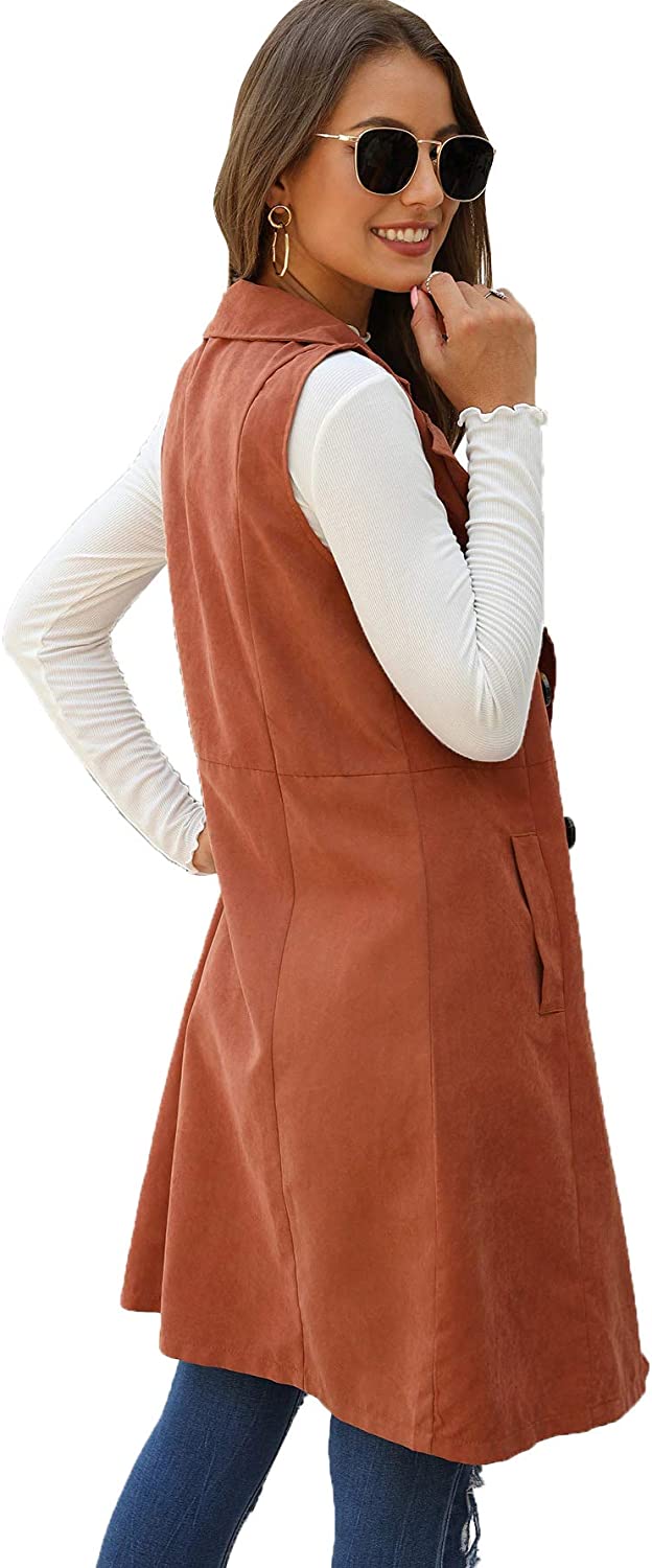 SheIn Women's Double Breasted Long Vest Jacket Casual Sleeveless Pocket Outerwear Longline