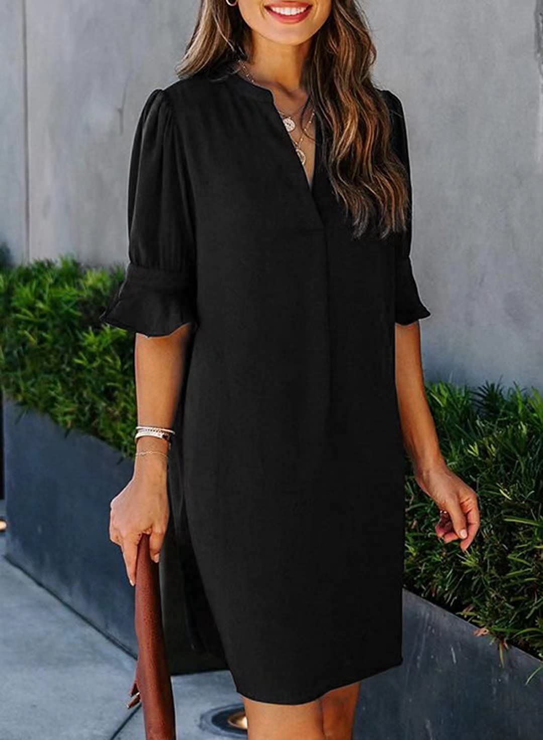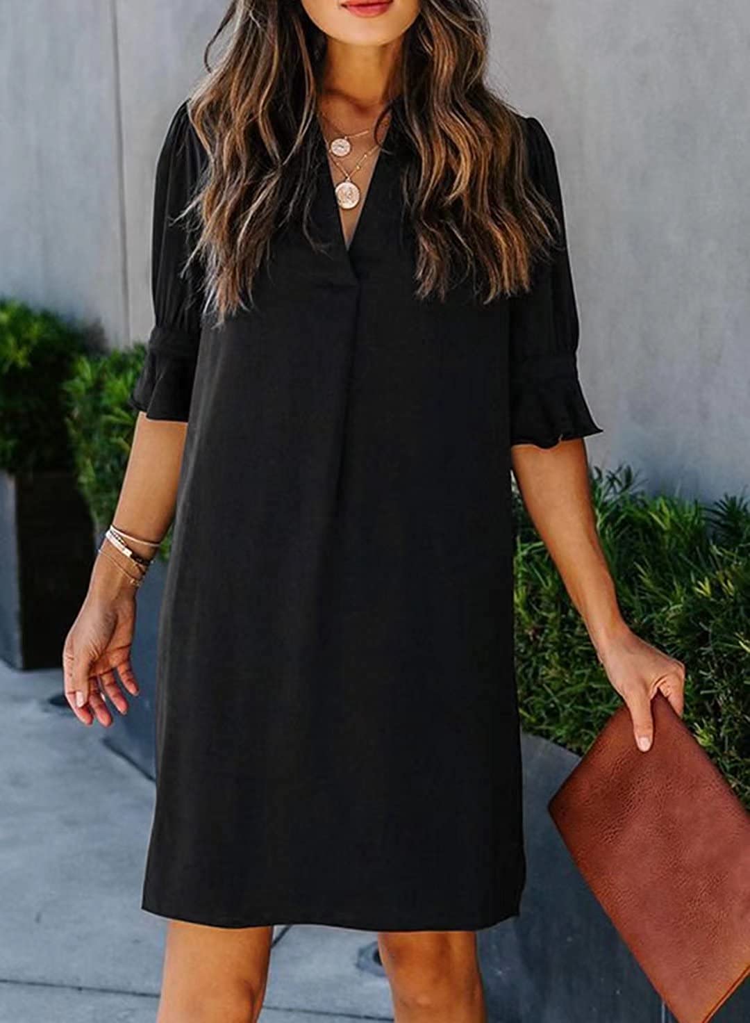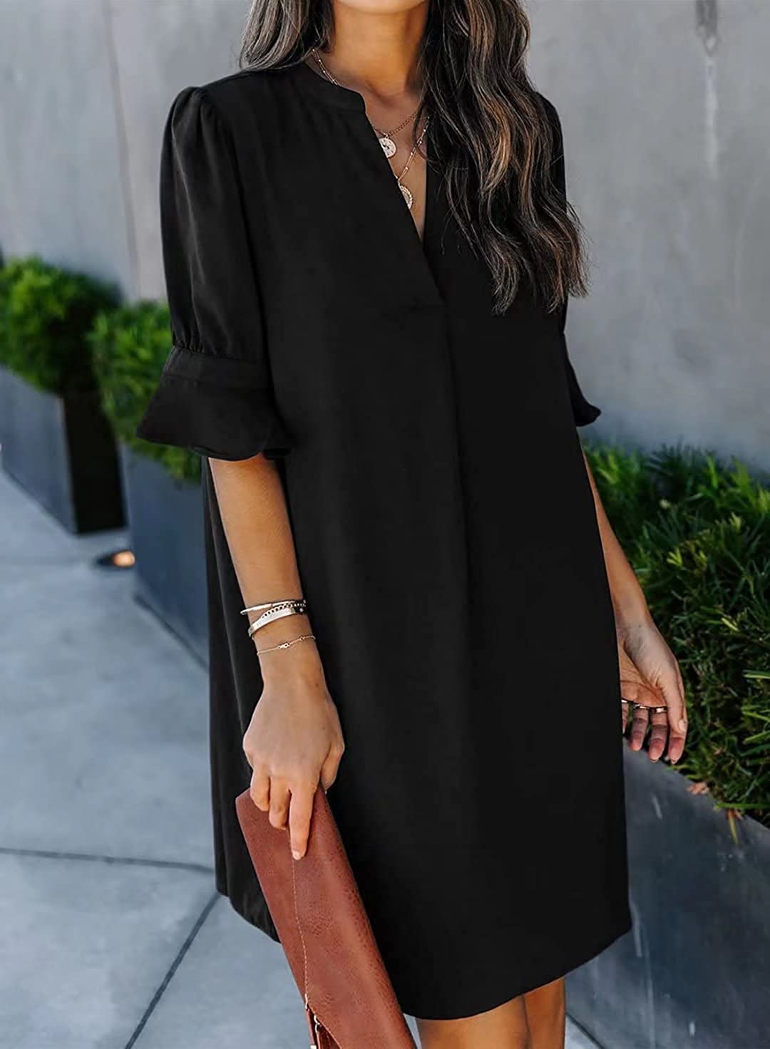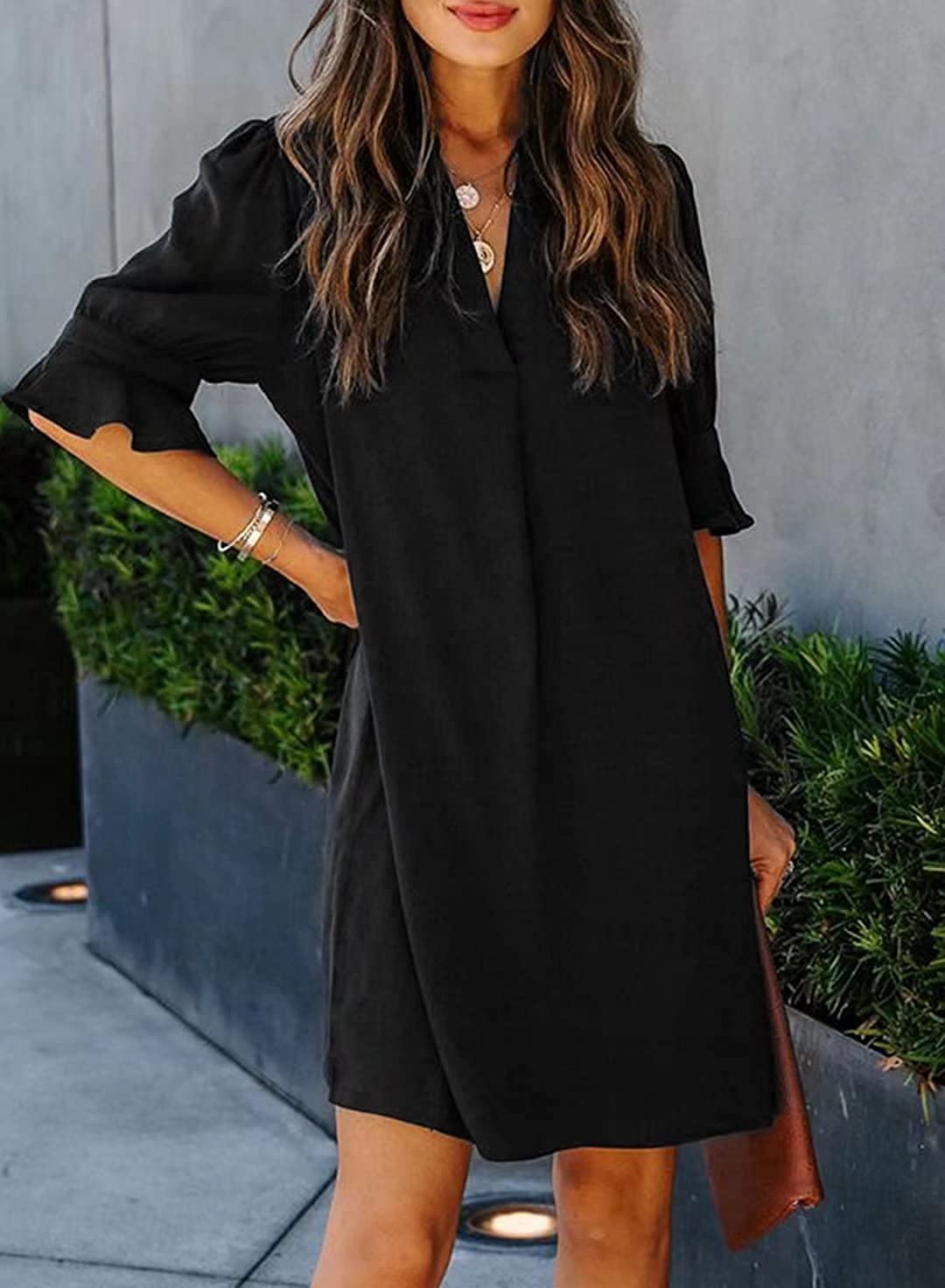 Shift Dress for Women V Neck Short Sleeves Solid Color Casual Summer Dresses(S-2XL)