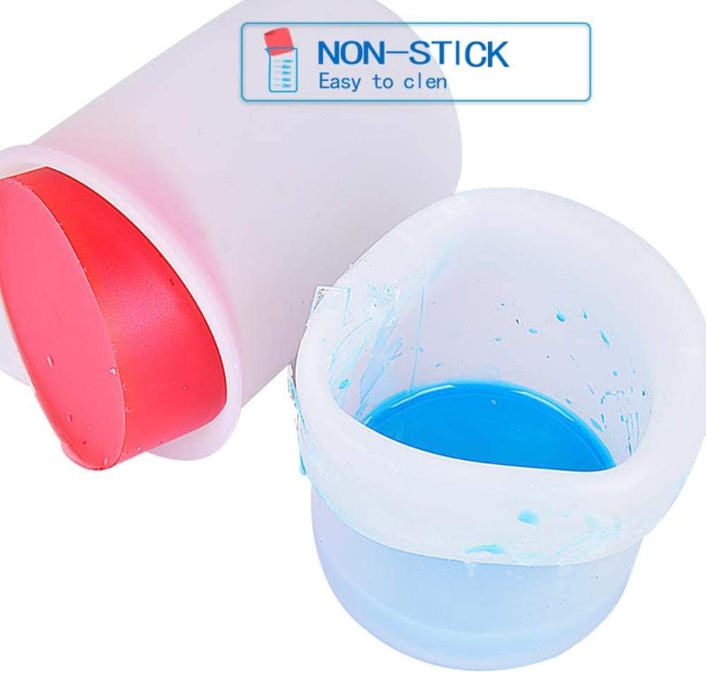 PACKAGE INCLUDED: 1pcs 250ml silicone cup+4pcs resin mixing cups +2 pcs silicone stire sticks Silicone measuring cups set: 1. Suitable tools for measuring, pouring and mixing small batches of casting resin, paint, acrylic, stain or other DIY projects. 2. Easy to clean: Non-stick surface convenient to clean, just let the resin harden inside the cups, let it dry and scrape out the wipe them down. 3. Made of premium silicone, durable and reusable, better than plastic disposable cups. silicone stire sticks: 1. Smooth Finish with Round Ends,Smooth surface easy to clean off with a paper towel ,able to use the silicone sticks over & over. 2. Not only can be used for epoxy resin diy, also perfect for testing, mixing or skin care products such as masks, creams, and so on.