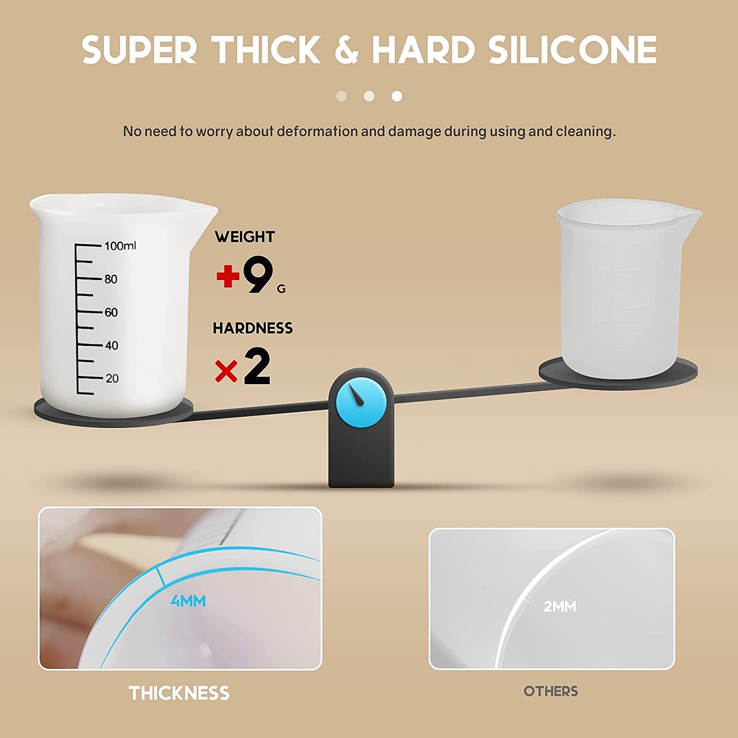 Silicone Measuring Cups for Epoxy Resin,JANCHUN Resin Supplies with 250&100ml Silicone Cups,Silicone Hard Stir Sticks,Epoxy Mixer,Color Cups,Mixing Tools for Resin,Molds,Jewelry Making, Easy to Clean