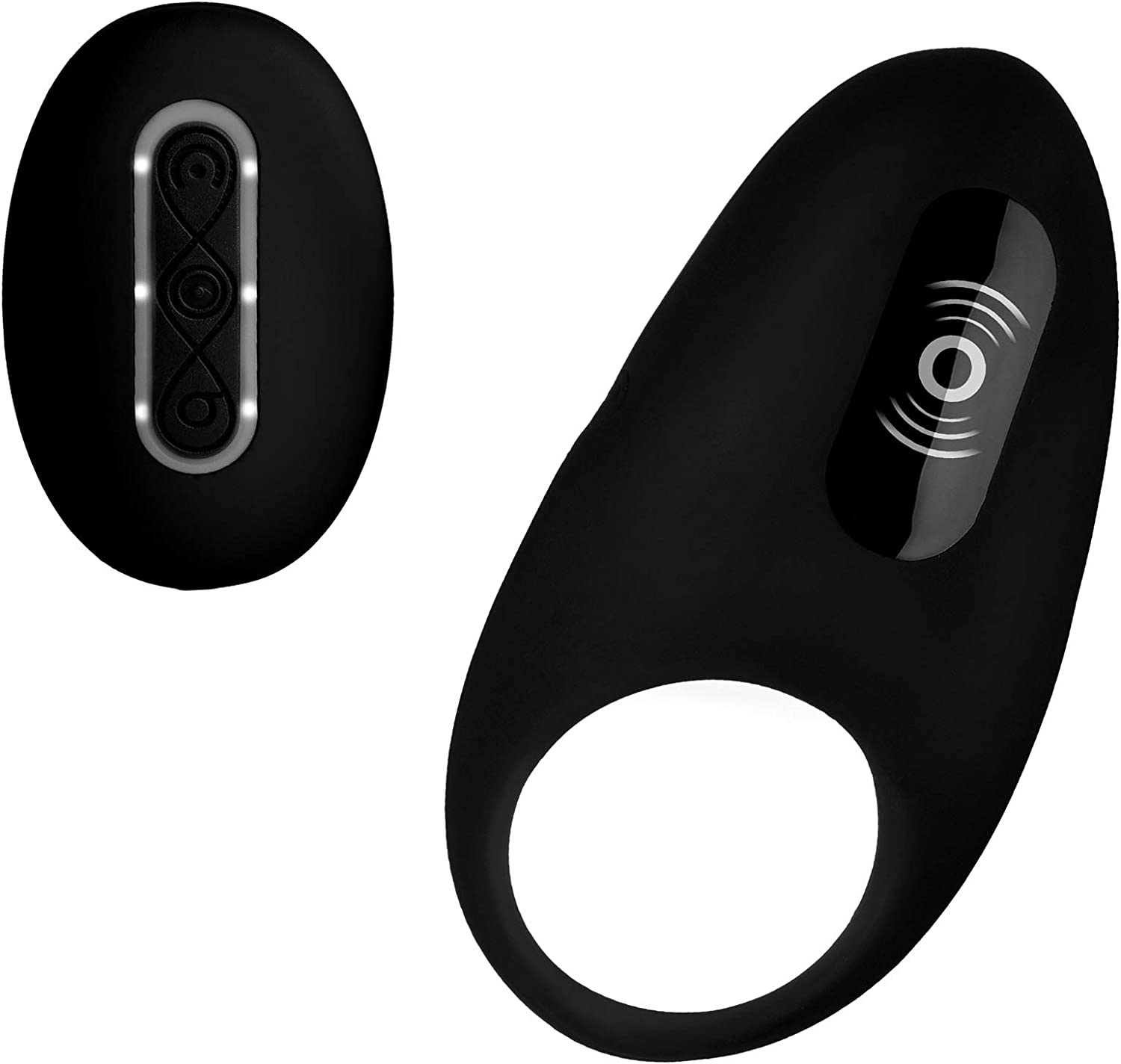 Give your package some added power! A powerful motor within this stretchy cock ring will thrum against your shaft, balls, or perineum, depending on how you wear it. Use it during sex with a partner to treat them to the vibration! Whether you appreciate the convenience during solo play, or the power during couples play, the wireless remote is an exciting feature for use at home or out on the town... with a 30 foot range! Separate buttons allow you to move back and forth between 3 speeds and 7 patterns of vibration. Let the pleasure take control with this easy-to-use, remote-controlled male pleasure tool. Made of premium silicone, it is phthalate-free for body safety, and non-porous for thorough sanitization. Clean this waterproof device after use with warm water and mild soap or toy cleaner. Measurements: 3.5 inches in total length. Unstretched ring is 1.25 inches in diameter. Vibrator portion is 2.3 inches in length, 1.8 inches in width. Remote is 2.2 inches in length, 1.4 inches in width. Material: Silicone. Color: Black. Note: Instructions included. Charges via USB. Remote requires 1-CR2032 cell battery, included.