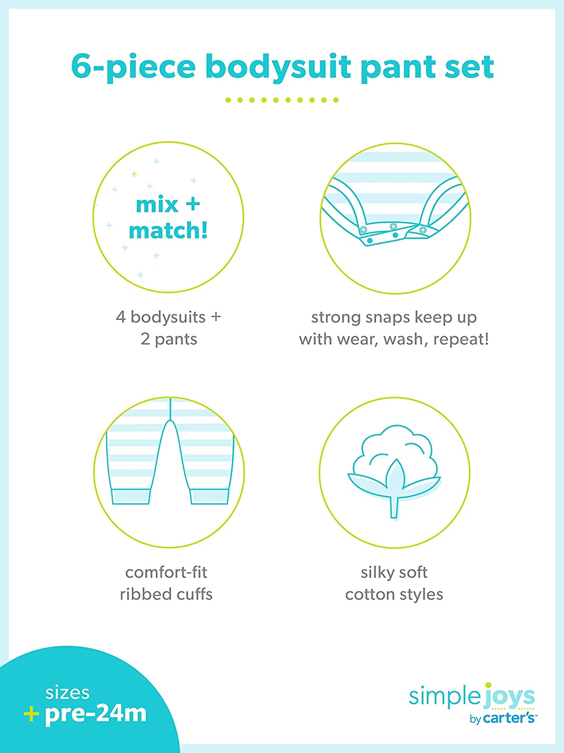 Simple Joys by Carter's Baby Girls' 6-Piece Bodysuits (Short and Long Sleeve) and Pants Set