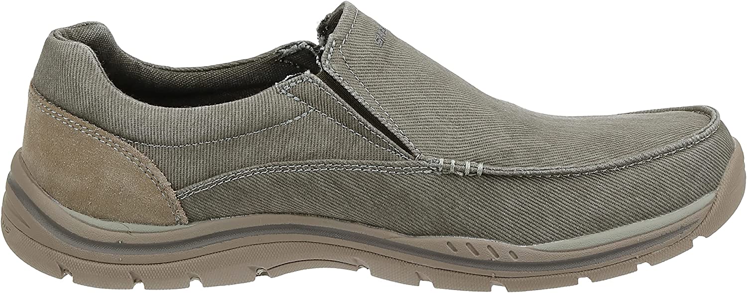 The SKECHERS Expected - Avillo casual slip-on sneaker features a breathable canvas upper and plush memory foam footbed. Relaxed Fit design provides a roomy, comfortable fit. Memory Foam insole provides incredible all-day comfort and support. Side goring for easy wear. Soft man-made lining and a padded collar provide a ventilated environment for your feet. Shock-absorbing midsole. Durable rubber outsole with high-grip sections for added traction.