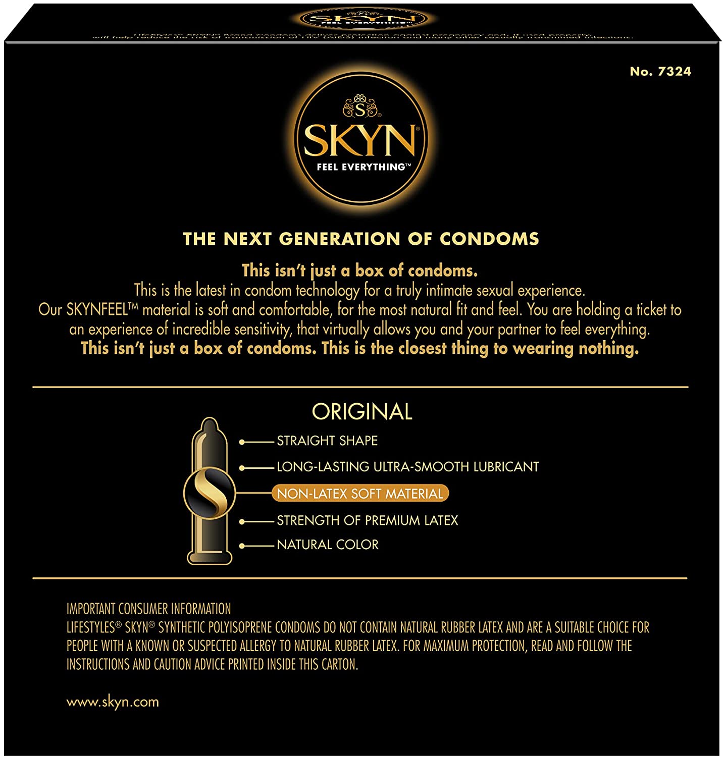 SKYN Premium Polyisoprene Lubricated Condoms easily stretch and conform to your shape so that they are comfortable to use. They're also free from allergens, making them a safe choice. These non-latex lubricated condoms feel soft and natural and provide an extraordinary experience.