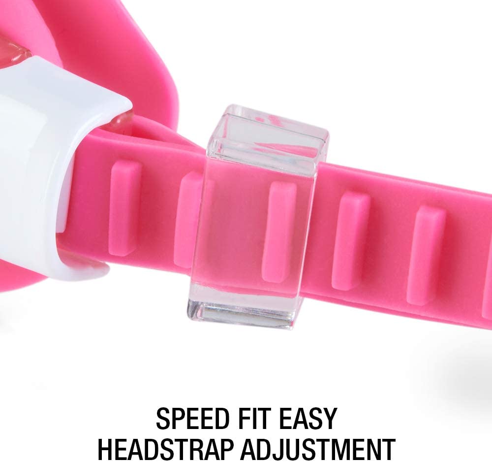 Watch them take on the water with ease wearing the comfy Speedo Skoogles google! Kid's age range (ages 3-8). Fun, colorful introductory goggle to fit kids. Middle eye fit ideal for a wide range of faces with a less restricting feel. Soft comfortable frame with quick adjust Speed Fit clips. Split silicone headstrap fits comfortably. UV and anti-fog protection. PVC and latex-free.