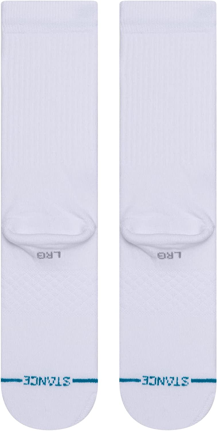 Get the most out of your everyday performance and get back to the basics with a pack of Stance Icon Classic Crew socks. Crew socks that sit at the calf. Sold in a three-pair pack. Made primarily with cotton for exceptional comfort, strength, and breathability. Elastic arch bands help provide outstanding support for all day comfort. 80% combed cotton, 15% polyester, 3% elastane, 2% nylon. Machine wash inside out, hang dry.