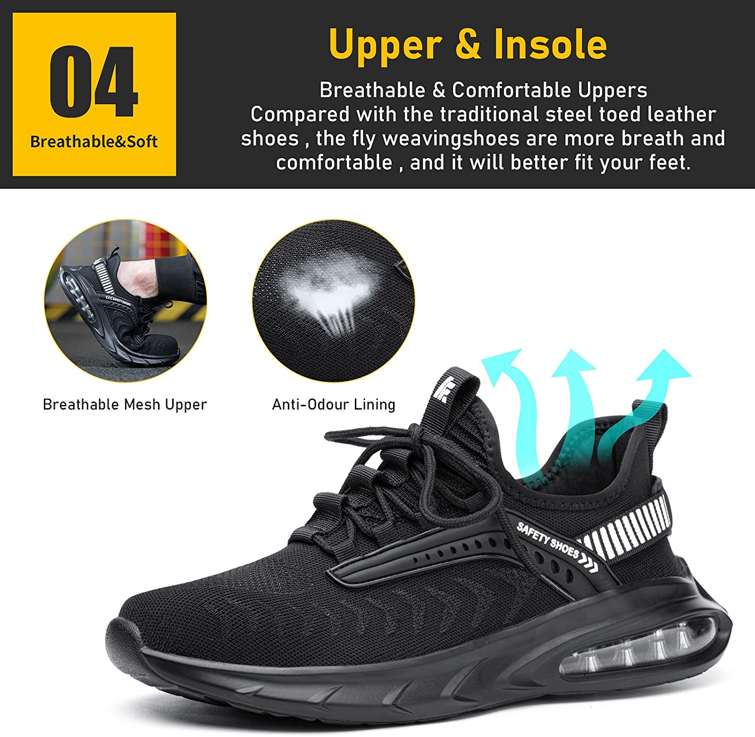 Steel Toe Shoes for Men Work Women Lightweight Air Cushion Sneakers Slip Resistant Safety Work Boots Indestructible Shoe