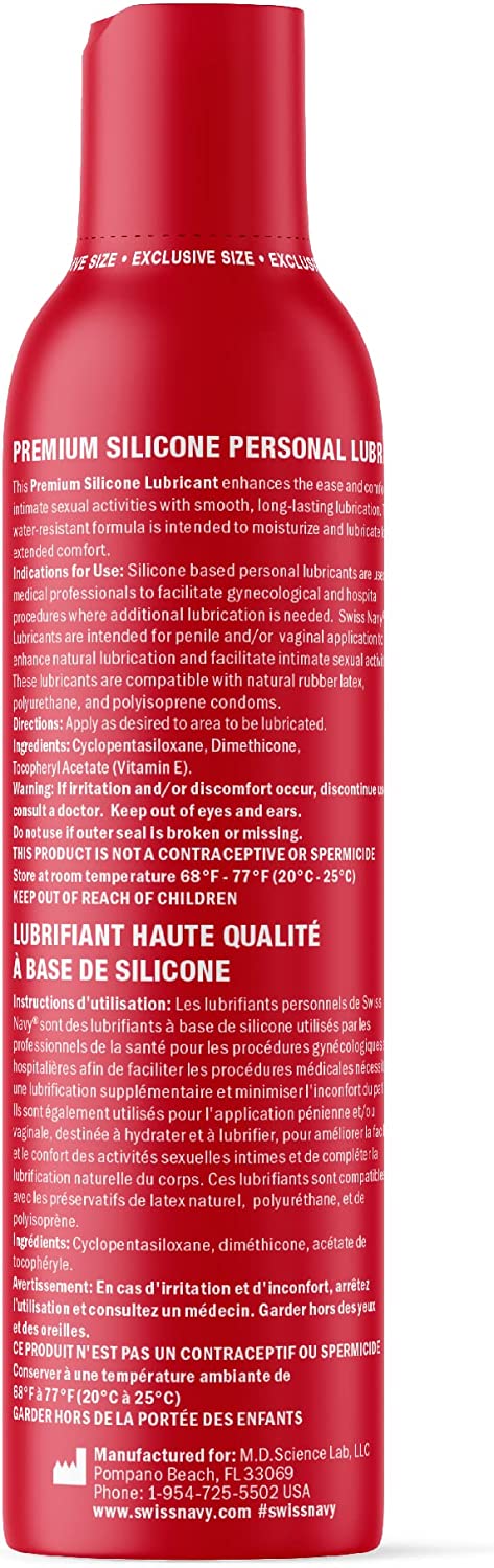Swiss Navy Premium Silicone Based Lubricant, 6 Ounce Personal Lube Sex Gel for Men Women & Couples, Condom & Latex Safe Hypoallergenic Unscented Zero Residue lubrication, Works Underwater