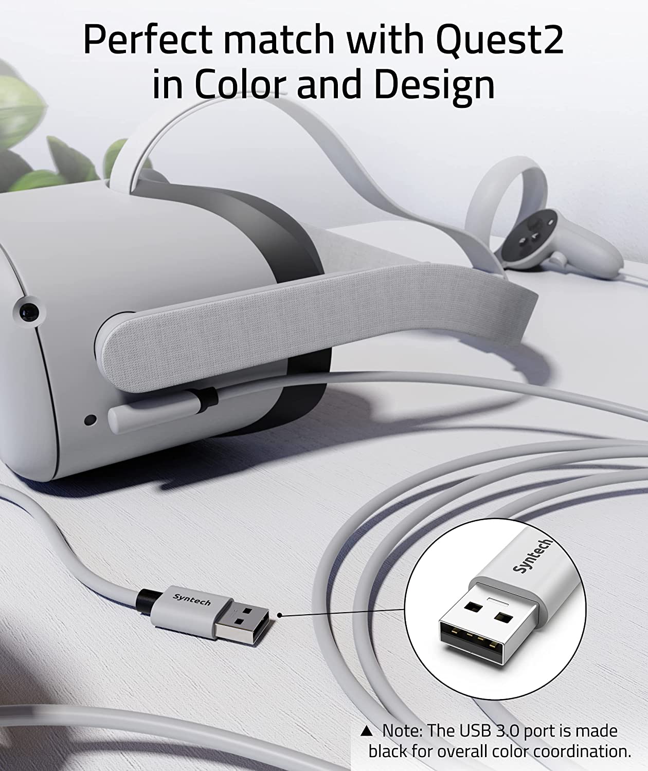 Syntech Link Cable 16 FT Compatible with Quest2 Accessories and PC/Steam VR, High Speed PC Data Transfer, USB 3.0 to USB C Cable for VR Headset and Gaming PC