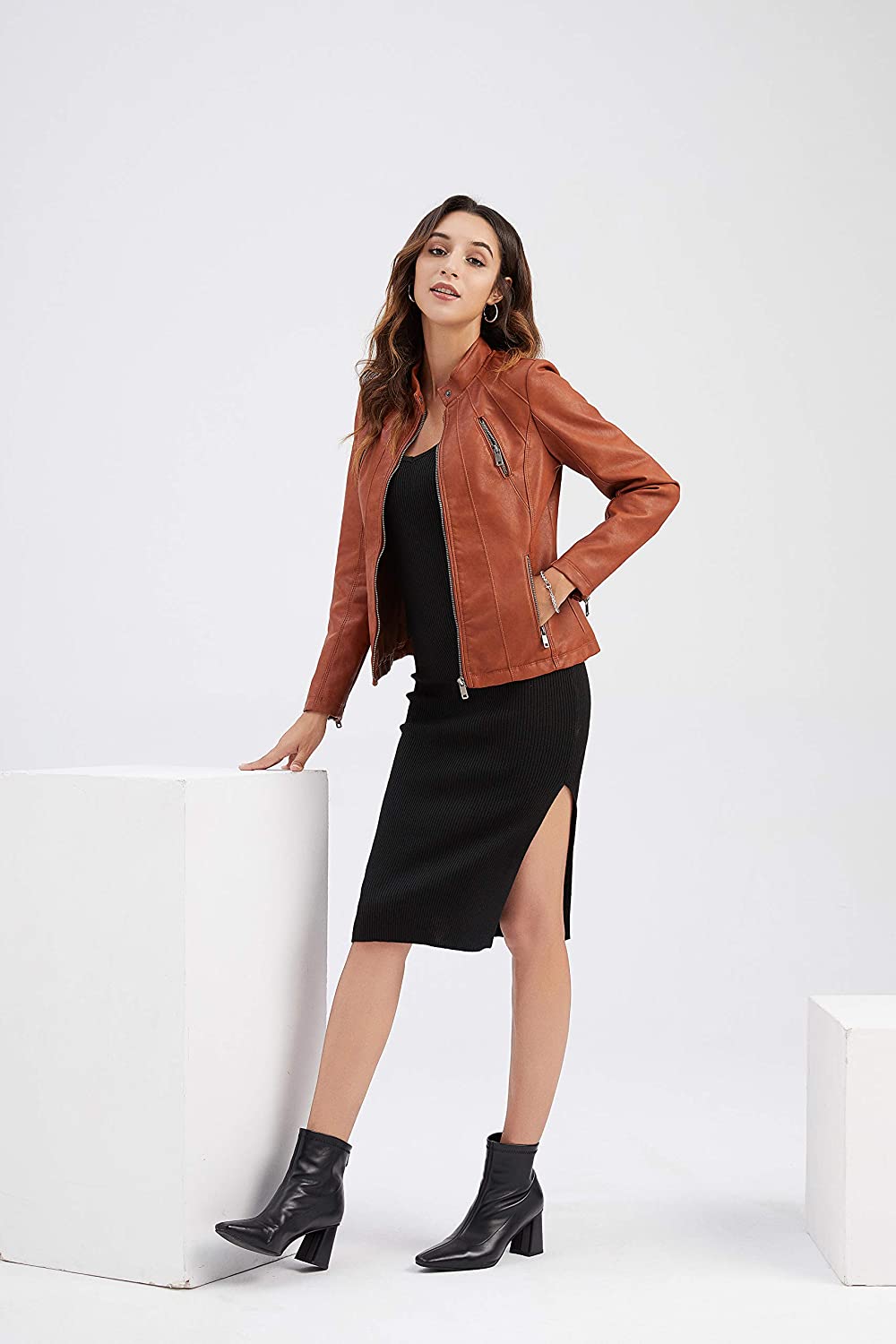 Tagoo Faux Leather Jacket Women Bomber Jacket Cropped Jacket Moto Coat for Biker with Belt