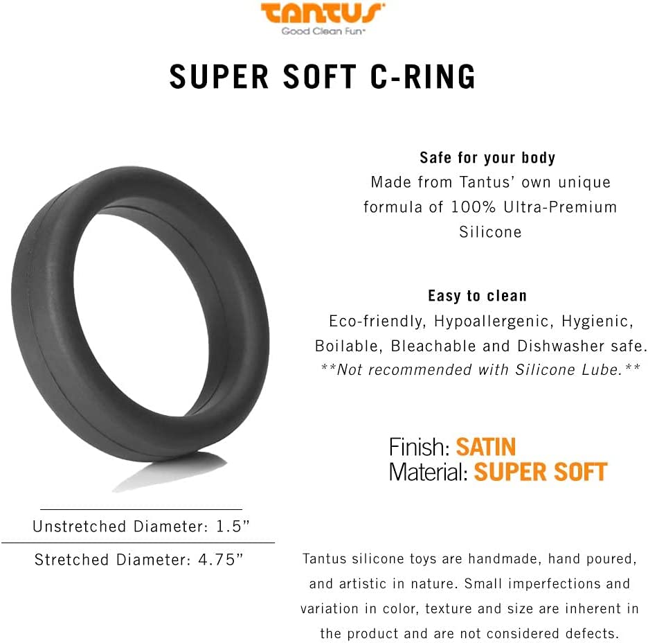 Tantus Sex/Adult Toys Super Soft C-Rings Cock/Penis Ring - 100% Ultra-Premium Silicone Satin Finish, 4.75" Stretched Resistance Adjustable Band for Men, Couples - Black