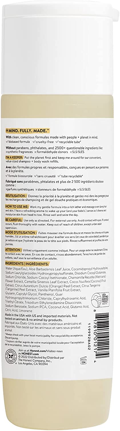 For a revitalizing pick-me-up at any time of the day, this citrus vanilla-scented tear-free shampoo + body wash is perfect to refresh and reset. Made with chamomile extract, aloe and other naturally derived ingredients, this 2-in-1 formula cleanses from head to toe. Gentle enough for babies, but great for the whole fam.