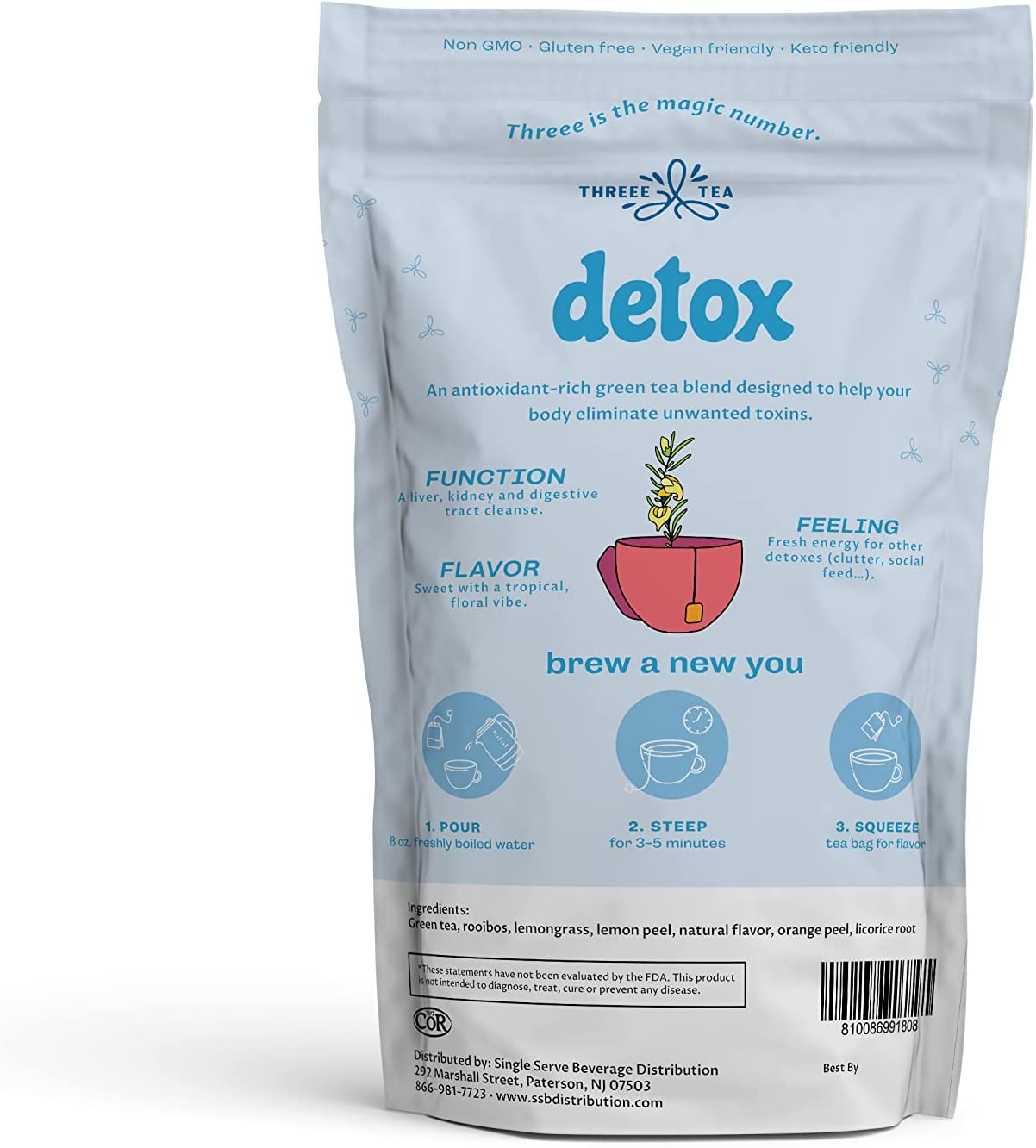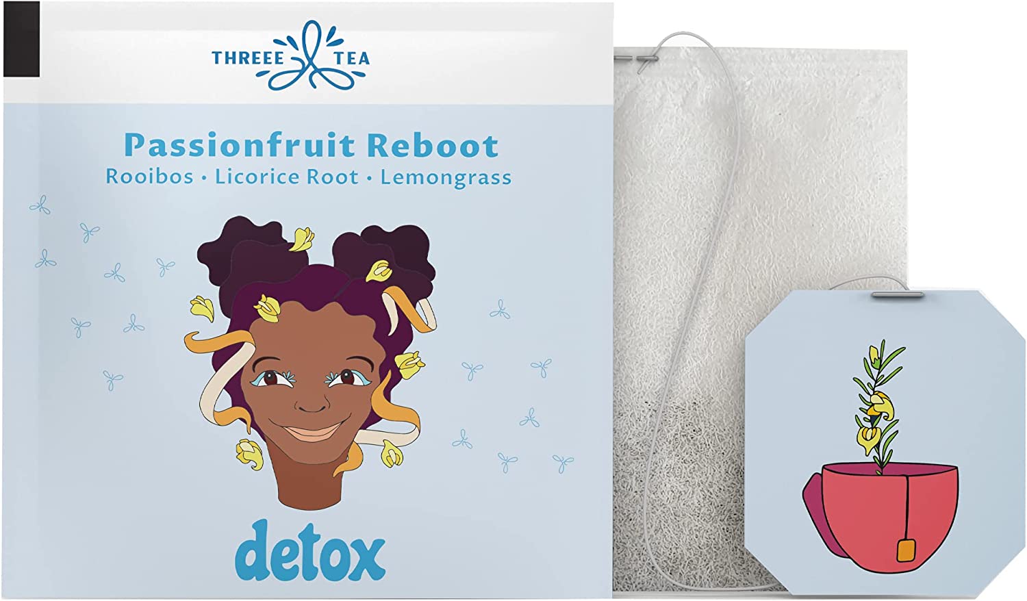 THREEE Detox Tea for Body Cleanse, Supports Liver Health, Radiant Skin, Boosts Energy, All Natural, Non GMO, Vegan, Keto Friendly Passionfruit Flavored Tea Detox, 30 Tea Bags