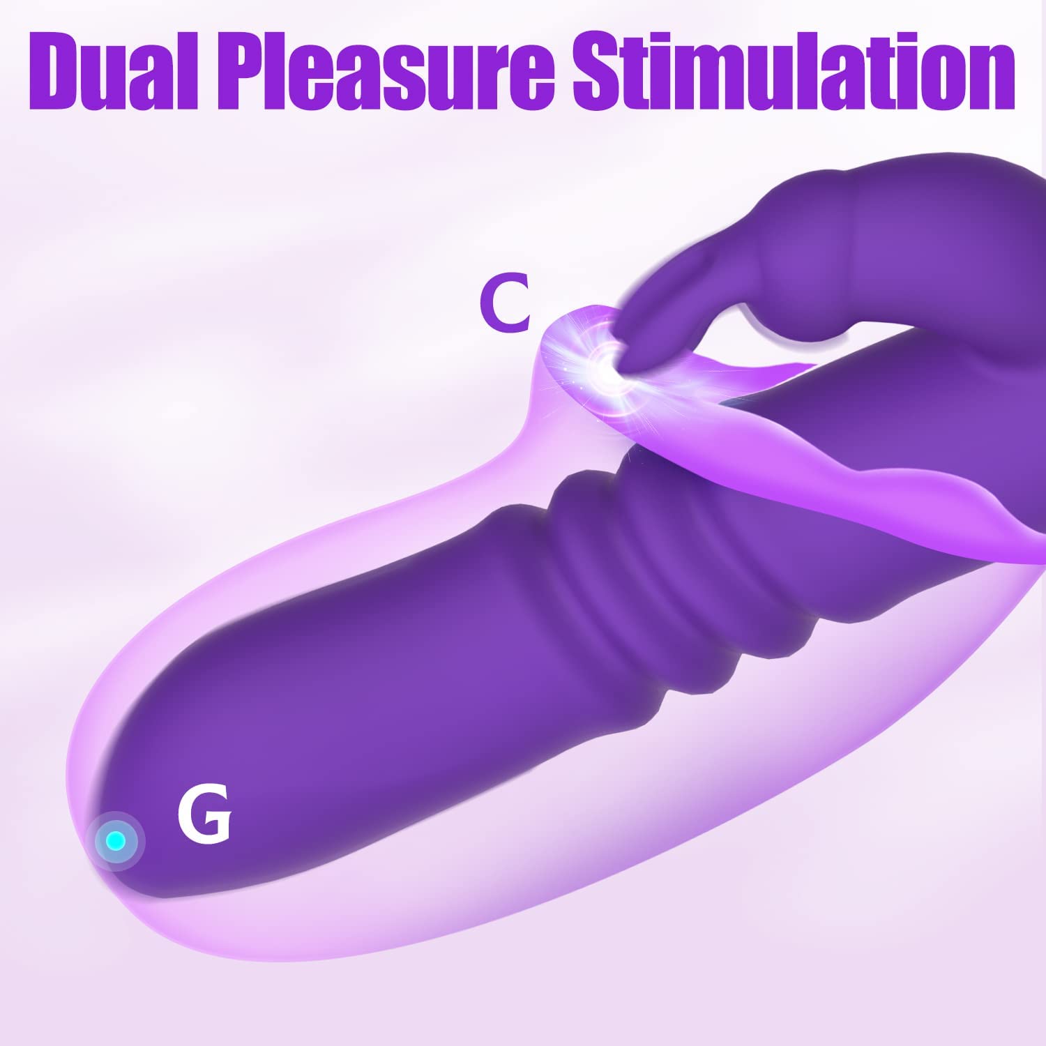 Thrusting Rabbit Vibrator Sex Toys for Women, 9.8" G-spot Vibrator with 3 Thrust & 7 Vibration Modes, Waterproof Clitoral Stimulator with Bunny Ears, Rotating Dildo Vibrator for Men, Women & Couple