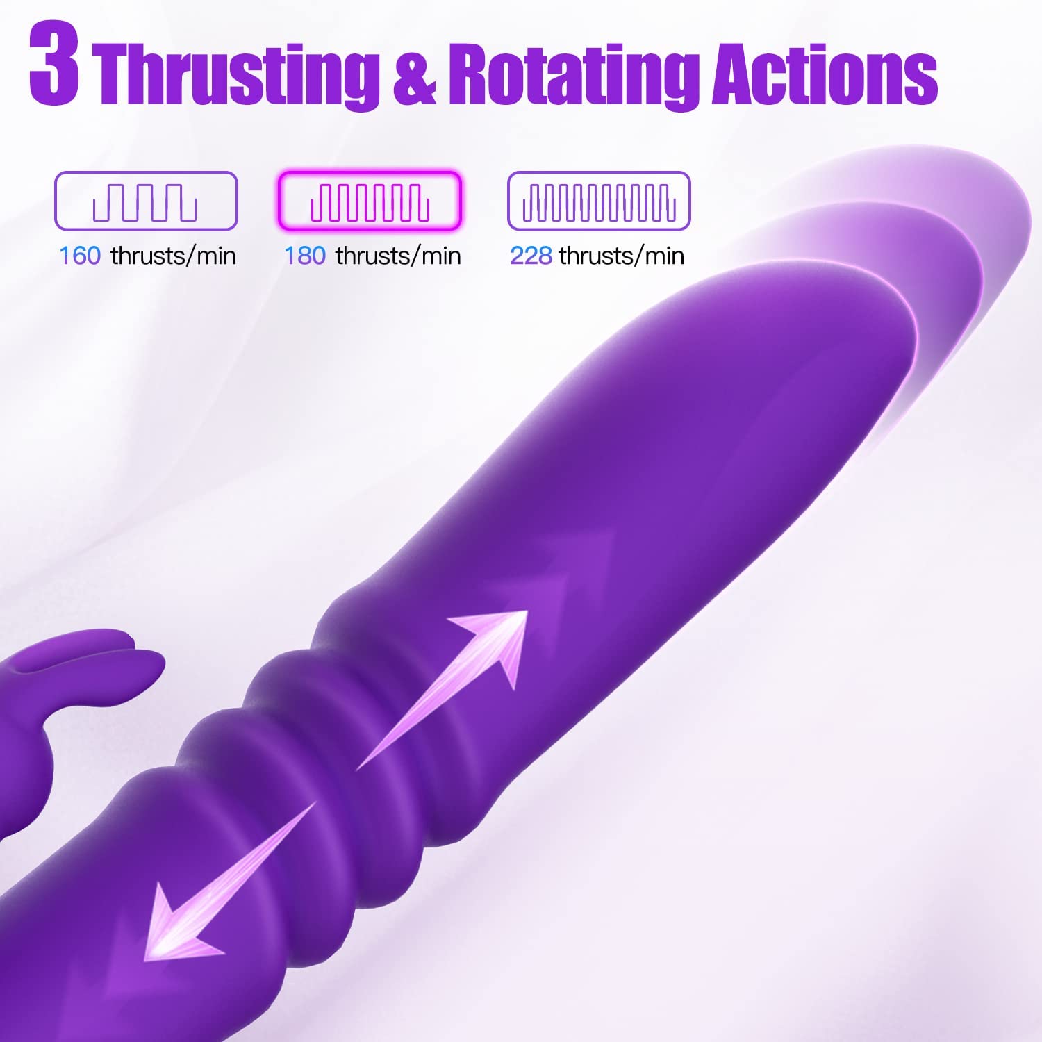 Thrusting Rabbit Vibrator Sex Toys for Women, 9.8" G-spot Vibrator with 3 Thrust & 7 Vibration Modes, Waterproof Clitoral Stimulator with Bunny Ears, Rotating Dildo Vibrator for Men, Women & Couple