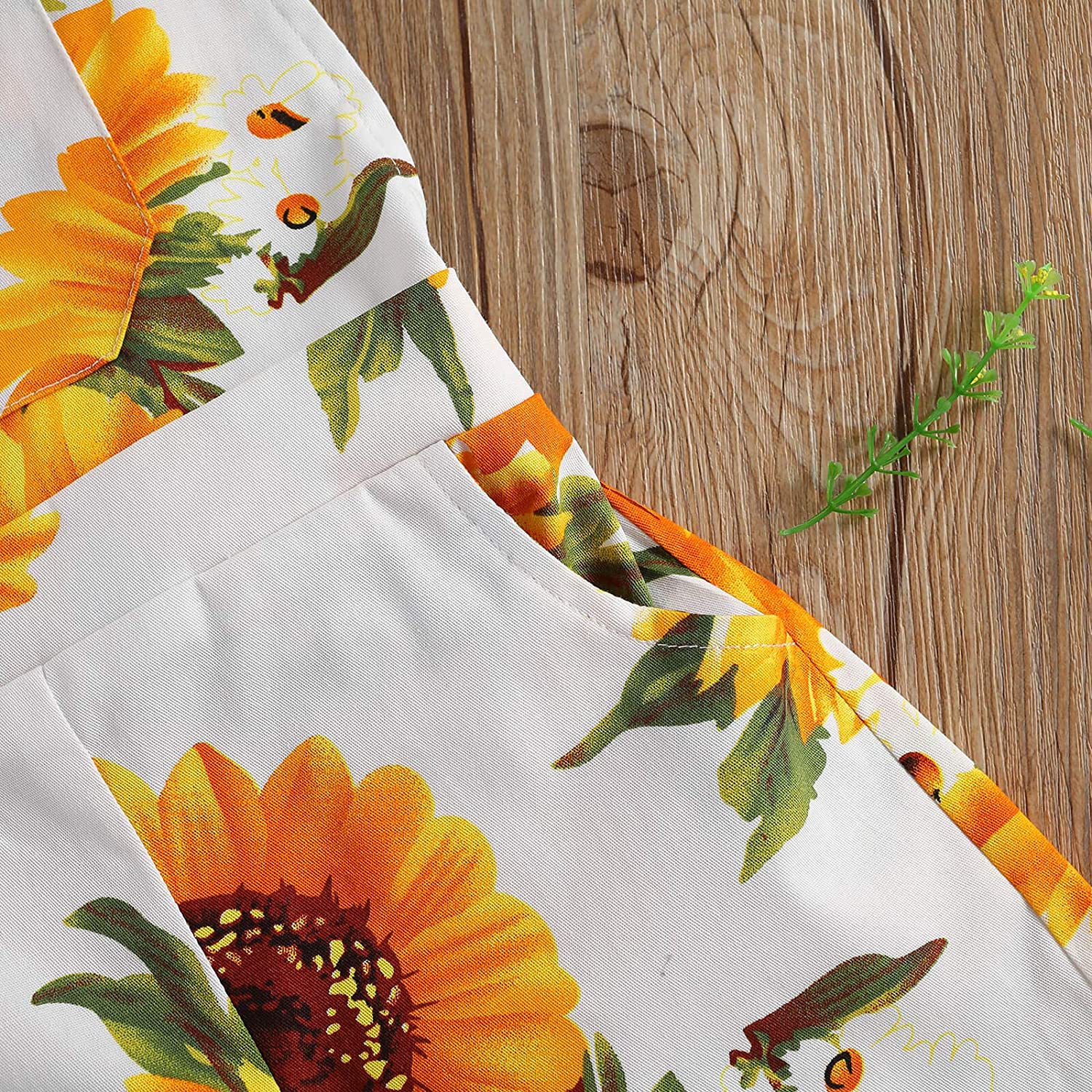 Toddler Baby Girl Sunflower Print Overalls Shorts with Pocket Suspender Trousers Cute Summer Clothing Outfit