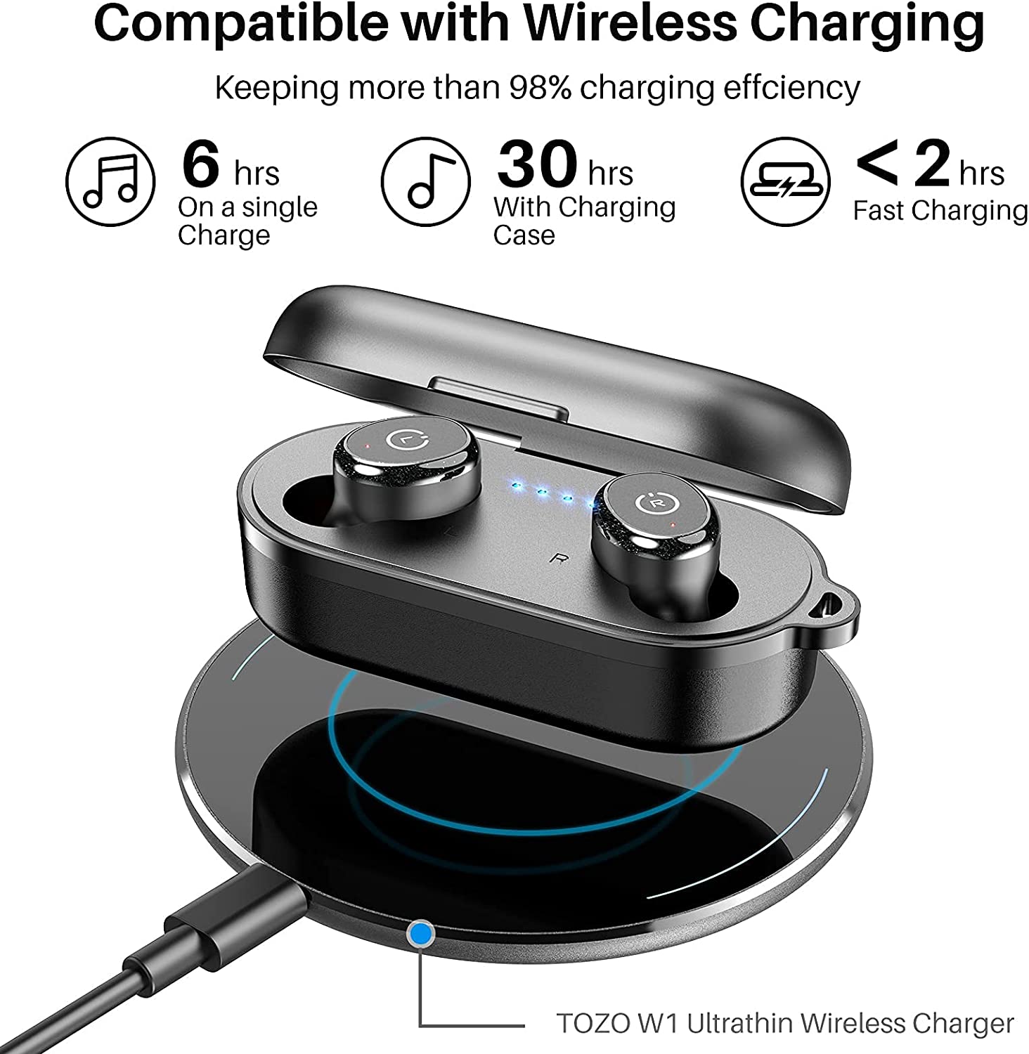TOZO T10 Bluetooth 5.3 Wireless Earbuds with Wireless Charging Case IPX8 Waterproof Stereo Headphones in Ear Built in Mic Headset Premium Sound with Deep Bass for Sport Black