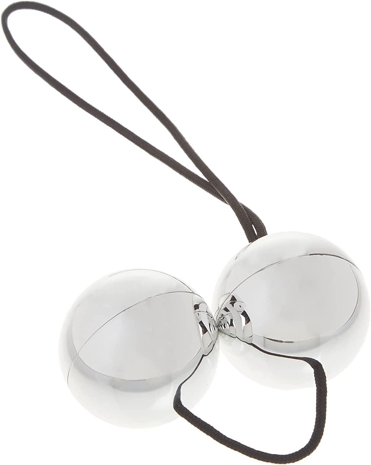 This double set of silver ben wa balls can be used both to tighten and excite. With each movement, subtle vibrations are created by the inner ball rolling gently within the outer ball. With regular use, these balls can help tone the pelvic floor muscles, leading to stronger and more frequent orgasms. Held together by a nylon cord, and tethered with a handy loop for easy retrieval, this set of twin pleasure balls are perfect for anal or vaginal use. With no batteries to replace or noisy motors, the benefits are easy to achieve. Just insert and go! Measurements: 9.5 inches in total length, each ball measures 1.3 inches in diameter.