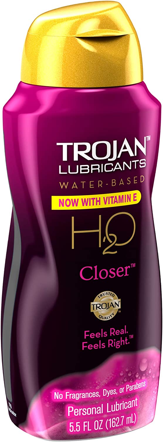 Elevate intimacy and take the experience to new heights with TROJAN H2O Closer Personal Lubricant. This advanced water-based formula takes intercourse to an irresistible intensity. TROJAN H2O Closer Personal Lubricant has hyaluronic moisturizers that hold 1,000 times their weight in moisture. You get advanced lubrication for uninterrupted pleasure. This lubricant is non-sticky and seamlessly vanishes after use – so it’s truly mess free. Fragrance and dye-free, as well as paraben-free, this gel plays well with vibrators, too. Includes one 3 oz. bottle of TROJAN H2O Closer Personal Lubricant. From condoms to vibrators to lubricants, TROJAN Brand is dedicated to delivering innovative, high-quality products that offer pleasure and protection. More Americans trust TROJAN Brand than any other condom, for over 100 years, because we’re committed to investing in public health efforts to support sexual health. The TROJAN Brand promotes a safe, healthy, and fun sex life.
