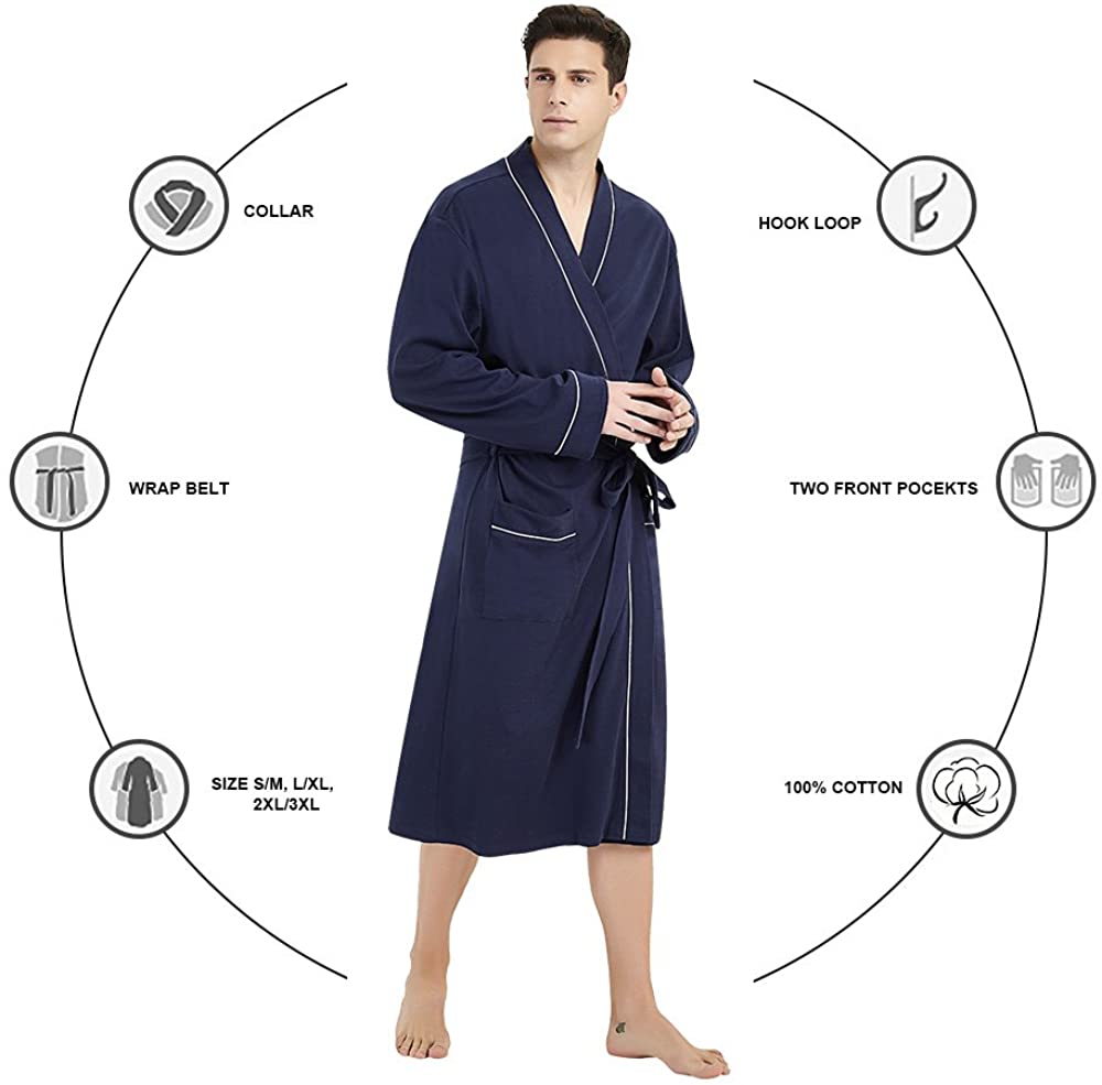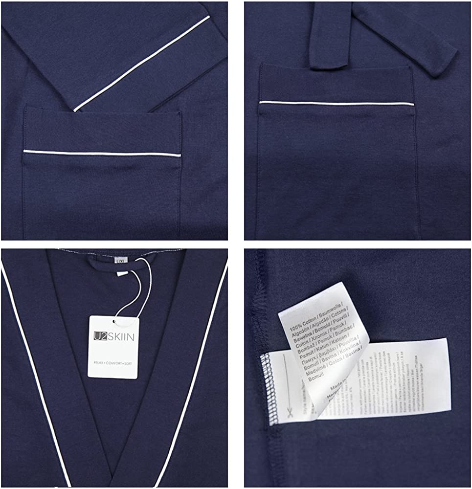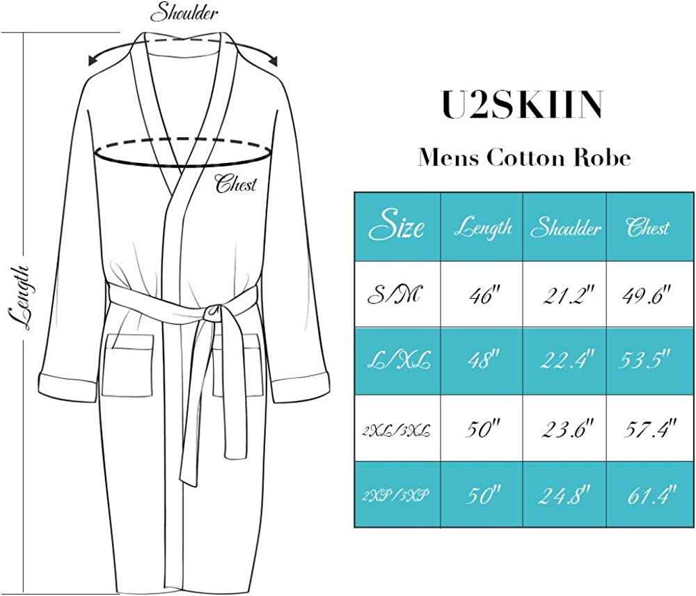 U2SKIIN Mens Cotton Robe Lightweight Knit Bathrobe